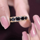 This vintage inspired black onyx five stone anniversary ring is designed for those who value symbolism, heritage styling, and refined contrast. The five-stone arrangement represents shared milestones, making it an especially meaningful choice for anniversaries and long-term commitments.