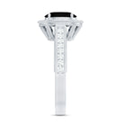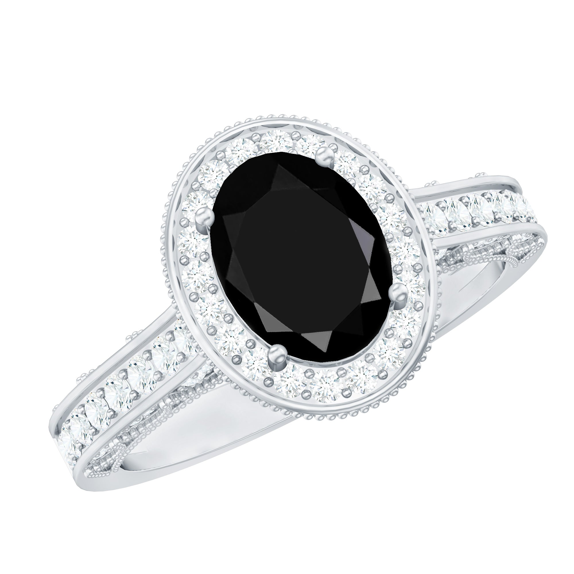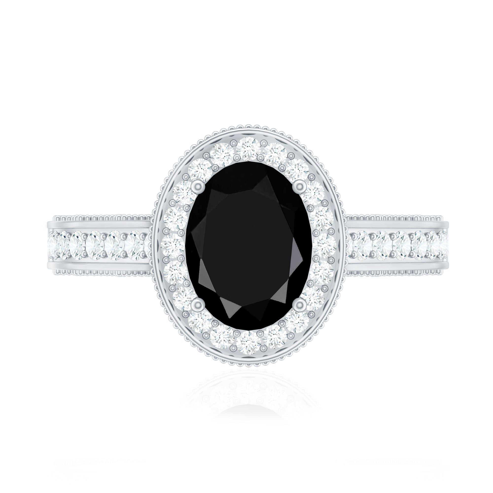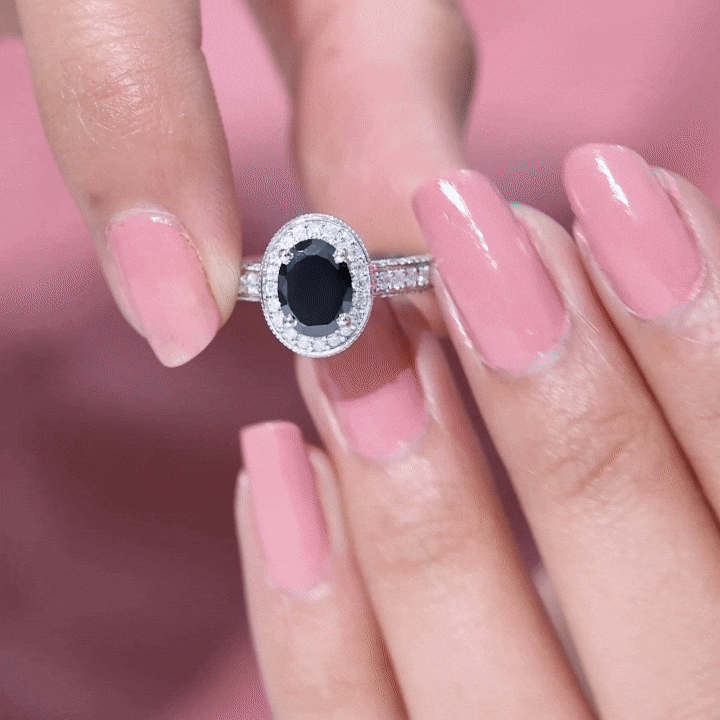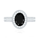 Vintage Inspired Black Onyx Oval Engagement Ring with Diamond Halo