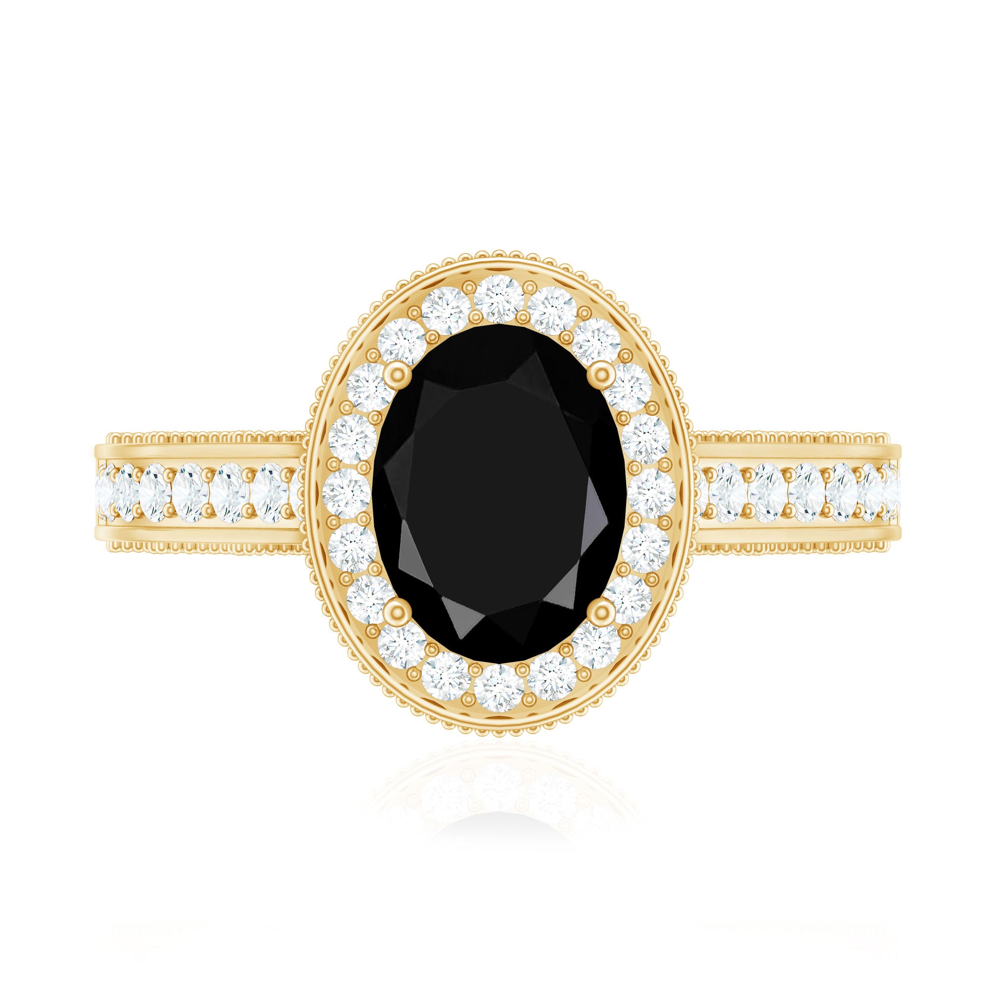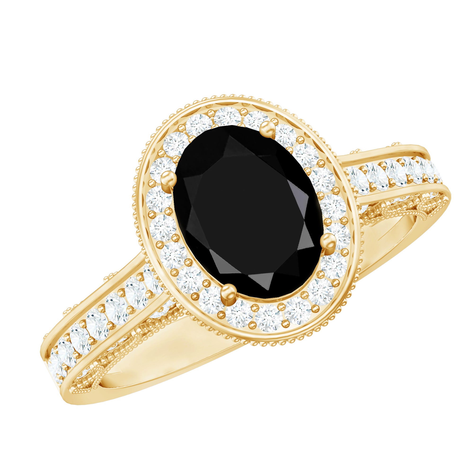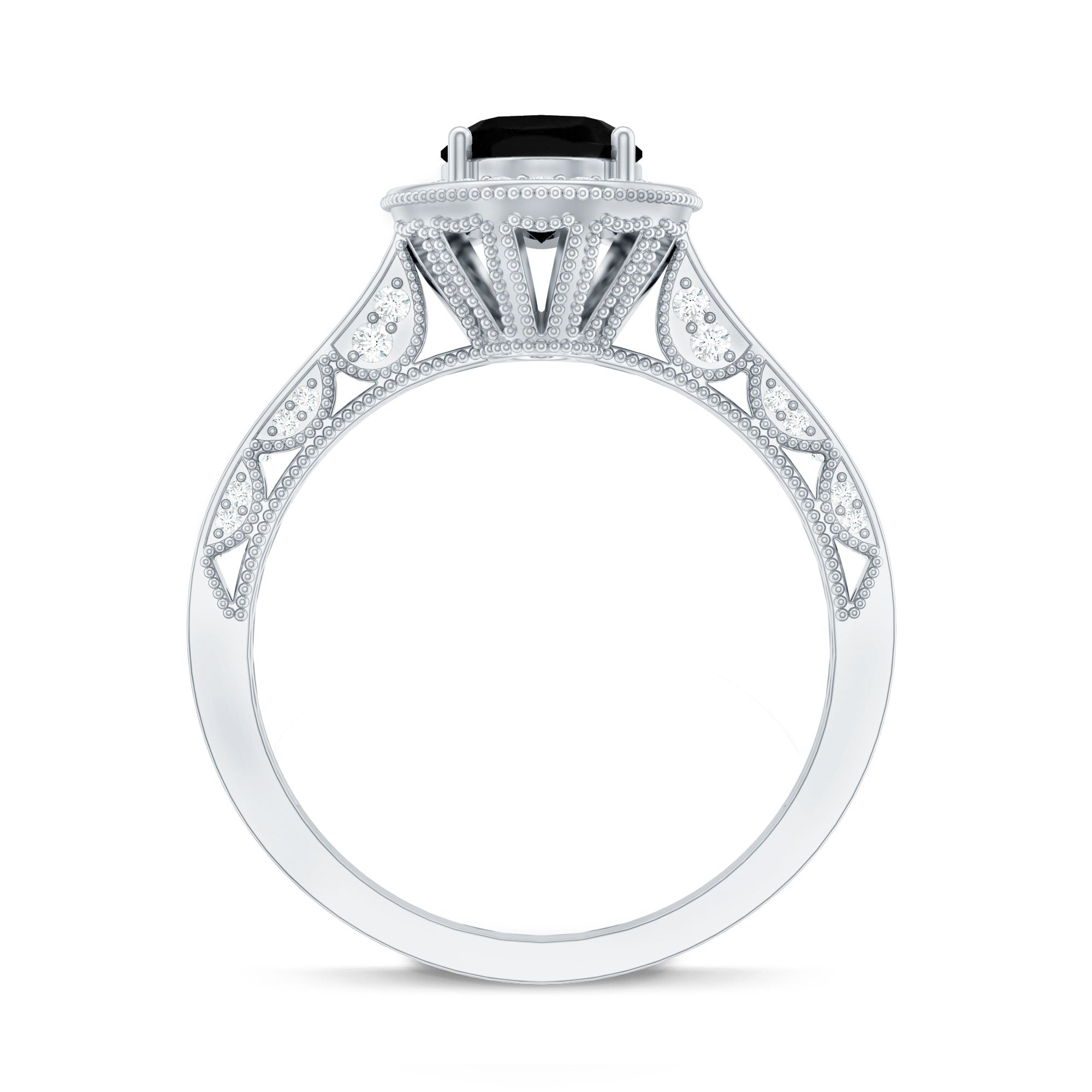 If you love vintage beauty with a modern touch, this Antique Black Onyx Ring was made for you. This Black Onyx Engagement Ring is inspired by old-world charm and timeless elegance. At the center sits a 6X8 MM oval cut black onyx, held securely in prong setting. Its deep tone makes a bold statement, while the sparkling round cut diamond halo around it adds a soft and glowing contrast. The band features delicate side diamonds, detailed beaded edges, and fine craftsmanship that reflects a true vintage feel. Every detail in this Oval Engagement Ring is designed to bring the beauty of the past into a meaningful piece for your future. This Vintage Halo Engagement Ring is perfect for brides who want something a little different, something romantic, elegant, and full of story. The Art Deco style brings in just the right mix of drama and grace, making it a piece you will treasure for years to come. Made with AAA quality black onyx and HI-SI quality diamonds, this Antique Looking Engagement Ring also comes in various choices of metal color, ring size, and purity, so you can personalize it just the way you like. Whether it is for an engagement or a special gift, this Black Onyx and Diamond Ring stands out with timeless sparkle and meaningful design, a perfect way to say YES with style.