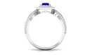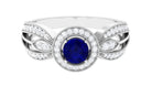 Vintage Inspired Blue Sapphire Engagement Ring with Diamond in Split Shank
