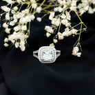 Vintage Inspired Cubic Zirconia Double Halo Engagement Ring Split Shank