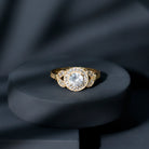 The fire and brilliance of Zircon Engagement Ring will forever shines through in every way, Our Vintage Engagement Ring gives you extra ordinary feel on your big day. This CZ Vintage Engagement Ring is embellished with Round Cut Zircon in Prong Setting surrounded with more dainty zircon and Gold Beaded Details.
