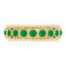 Timeless and full of meaning, this Emerald Eternity Band captures the beauty of everlasting love through its elegant design and graceful sparkle. The Full Eternity Band features a full circle of round cut emeralds, set securely in bezel setting. Along the edges runs a delicate beaded pattern, inspired by vintage artistry, adding a subtle touch of old-world charm. The continuous line of glowing green emeralds creates a captivating effect, making this Wedding Anniversary Band a perfect choice for celebrating milestones, anniversaries, or simply cherishing a love that stands the test of time. Designed with care and attention to detail, this Emerald Wedding Band combines classic beauty with lasting craftsmanship. The AAA quality emeralds shine with rich color and brilliance, offering both style and sentiment in every glance. This elegant band can be worn alone for a simple yet striking statement or stacked with an engagement ring for a layered, luxurious look. It also makes a heartfelt gift, representing promises that endure and memories that never fade. Presented with a gemstone certificate and a beautiful jewelry box, this Vintage Wedding Band is ready to be treasured for years to come.