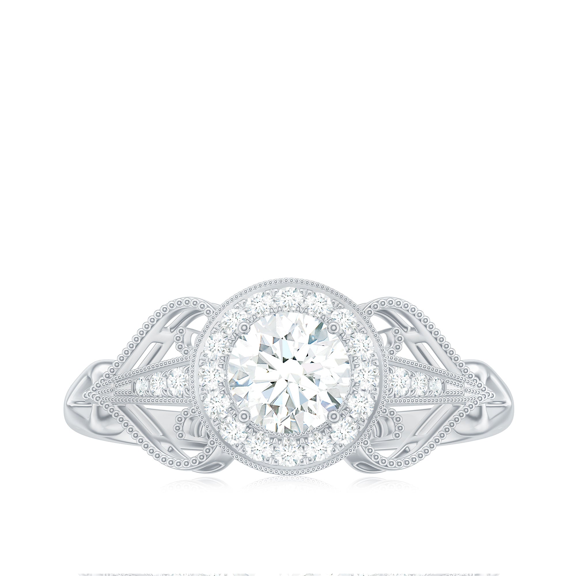 Exuding timeless romance, this Vintage Style Engagement Ring captures the essence of a bygone era. This exquisite ring features intricate detailing and is adorned with shimmering Lab Grown Diamond gemstones, reminiscent of the glamour of yesteryears. This Engagement Ring symbolizes a love story that transcends time, a captivating choice for a lifelong commitment.