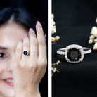 Get this timeless masterpiece for the modern bride. This vintage inspired lab created black diamond engagement ring is sure to get more attention. The ring features a dazzling 8 MM lab-created black diamond center stone surrounded by a halo of sparkling Diamond. This ring is perfect for the bride who wants a unique and unforgettable engagement ring. It is sure to turn heads and start conversations wherever you go.