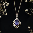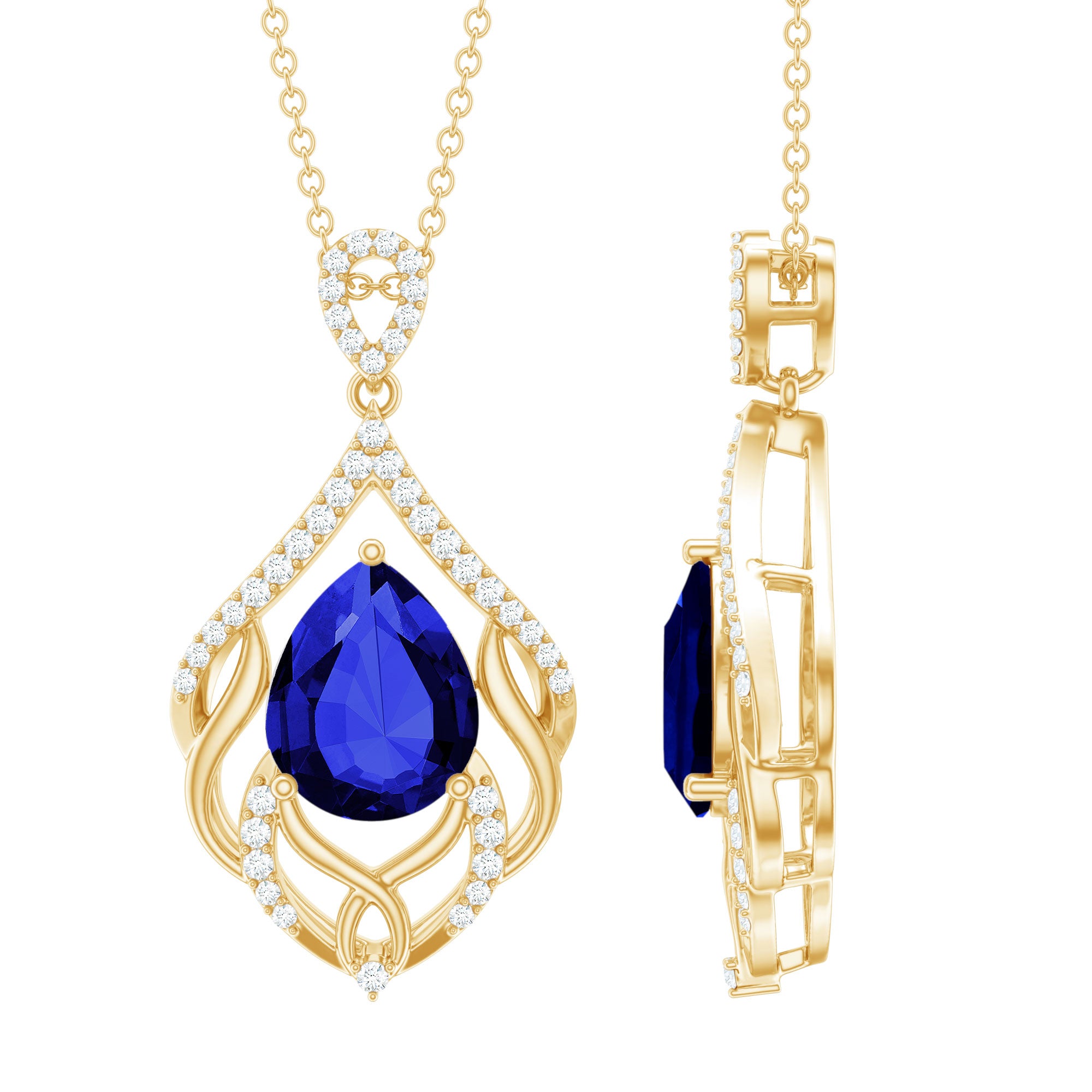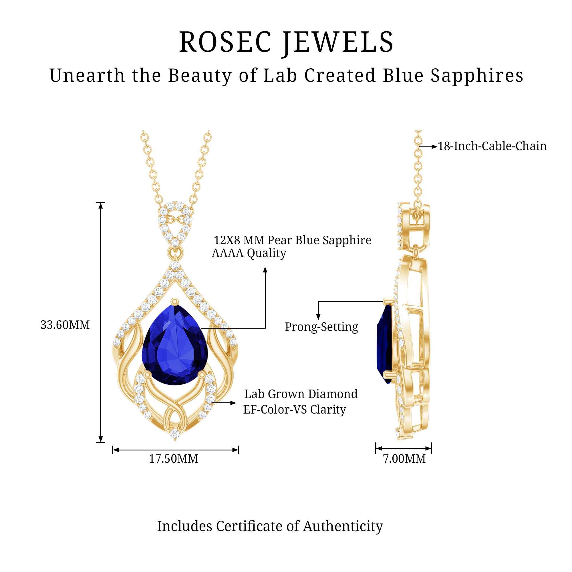 Vintage Inspired Lab Grown Blue Sapphire Designer Necklace with Diamond