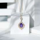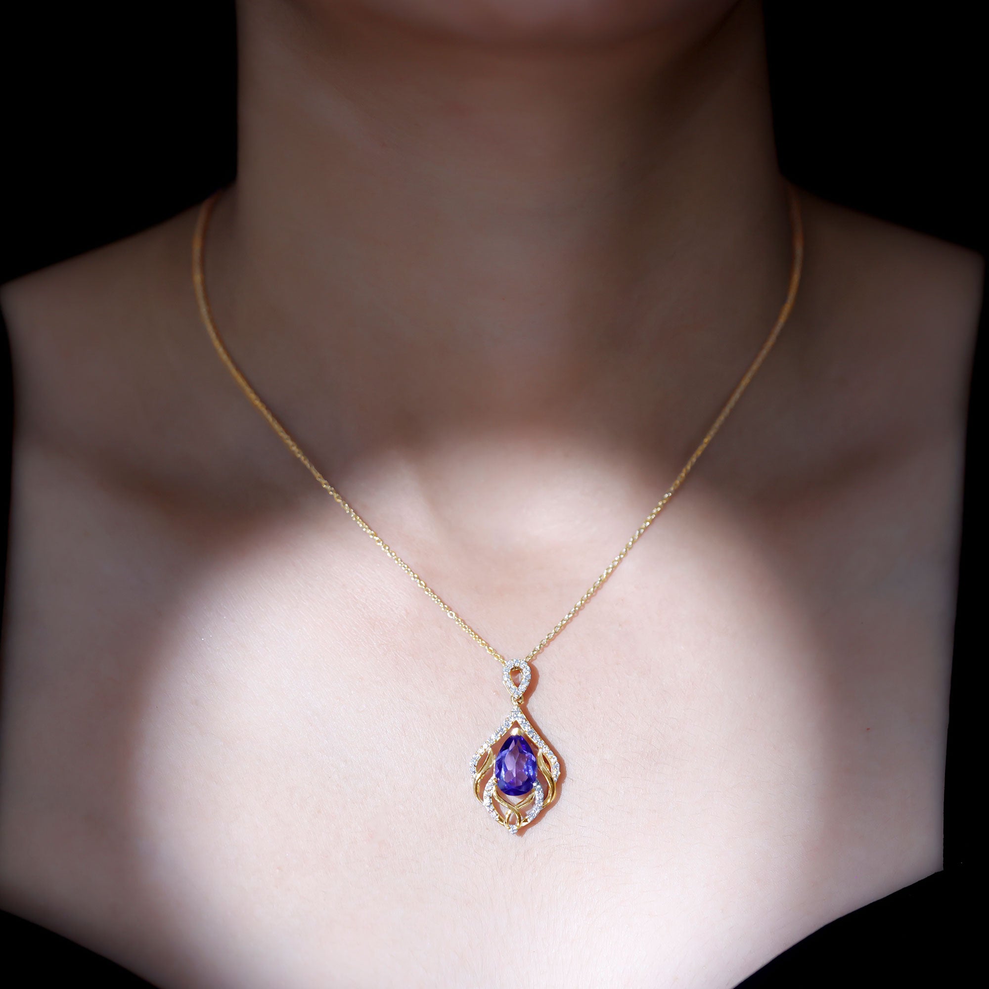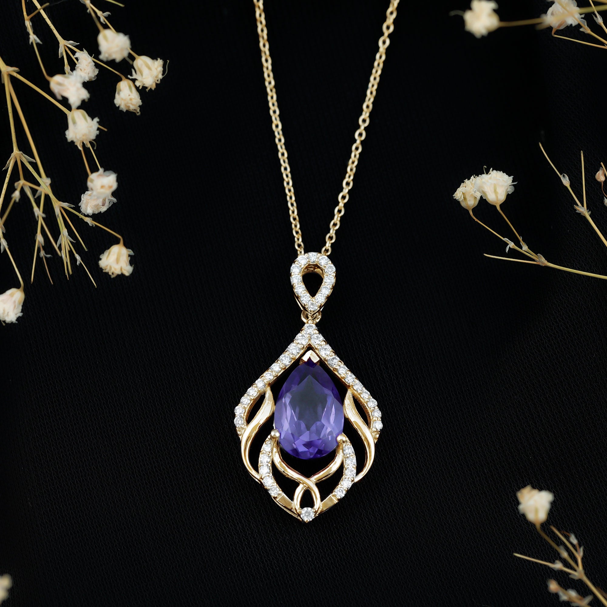 To dazzle the normal appearance here is the Sapphire Diamond Pendant. The pendant is crafted with 12x8 mm pear-shaped Lab Created Sapphire which is embedded in the designer metal frame adorned with the lab-created diamonds. This Teardrop Blue Pendant Necklace is adorned with the Aaaa quality Saphire and Ef-Vs quality diamond. This Vintage Sapphire Pendant will adorn the neckline with the grace of Sapphire and the elegance of diamond.