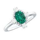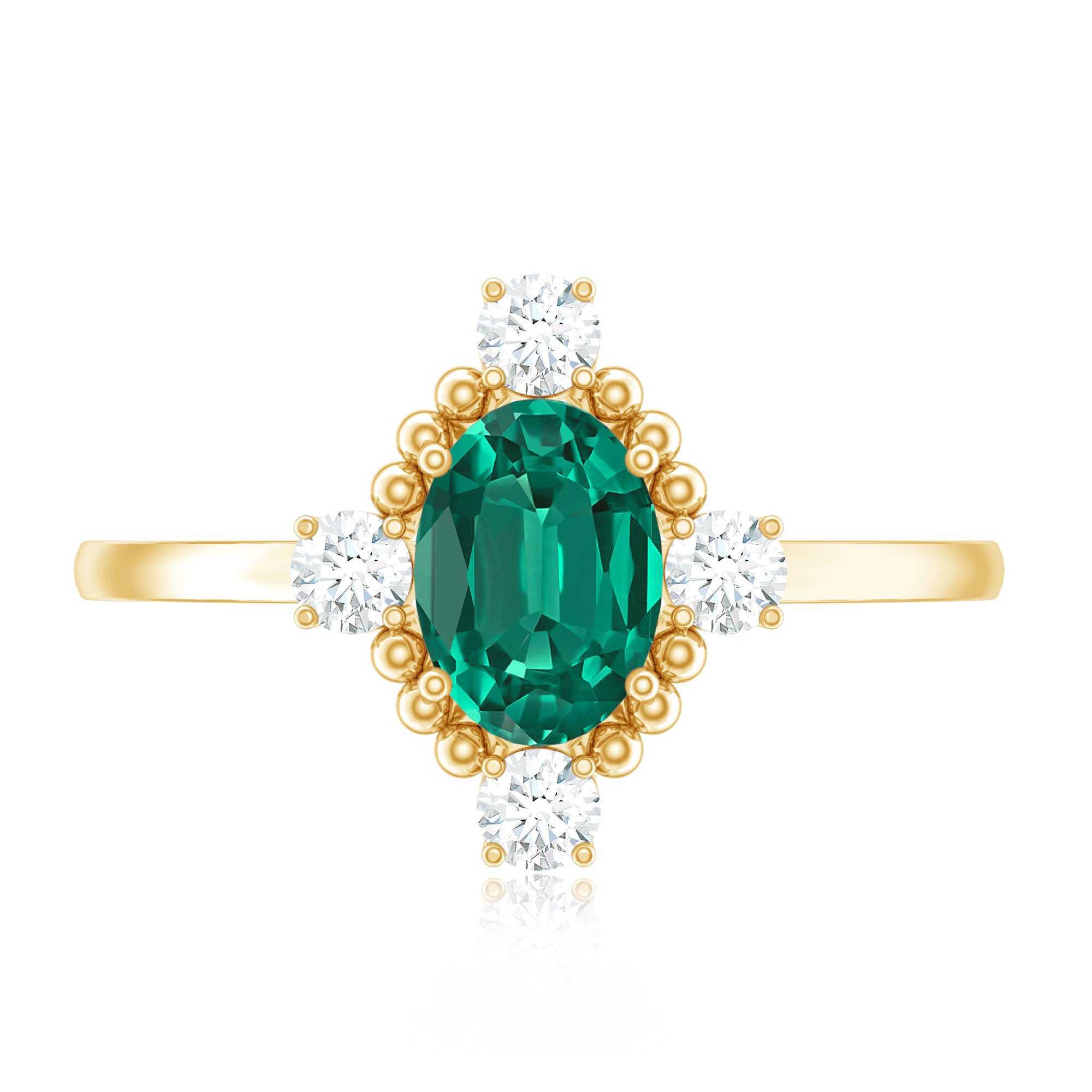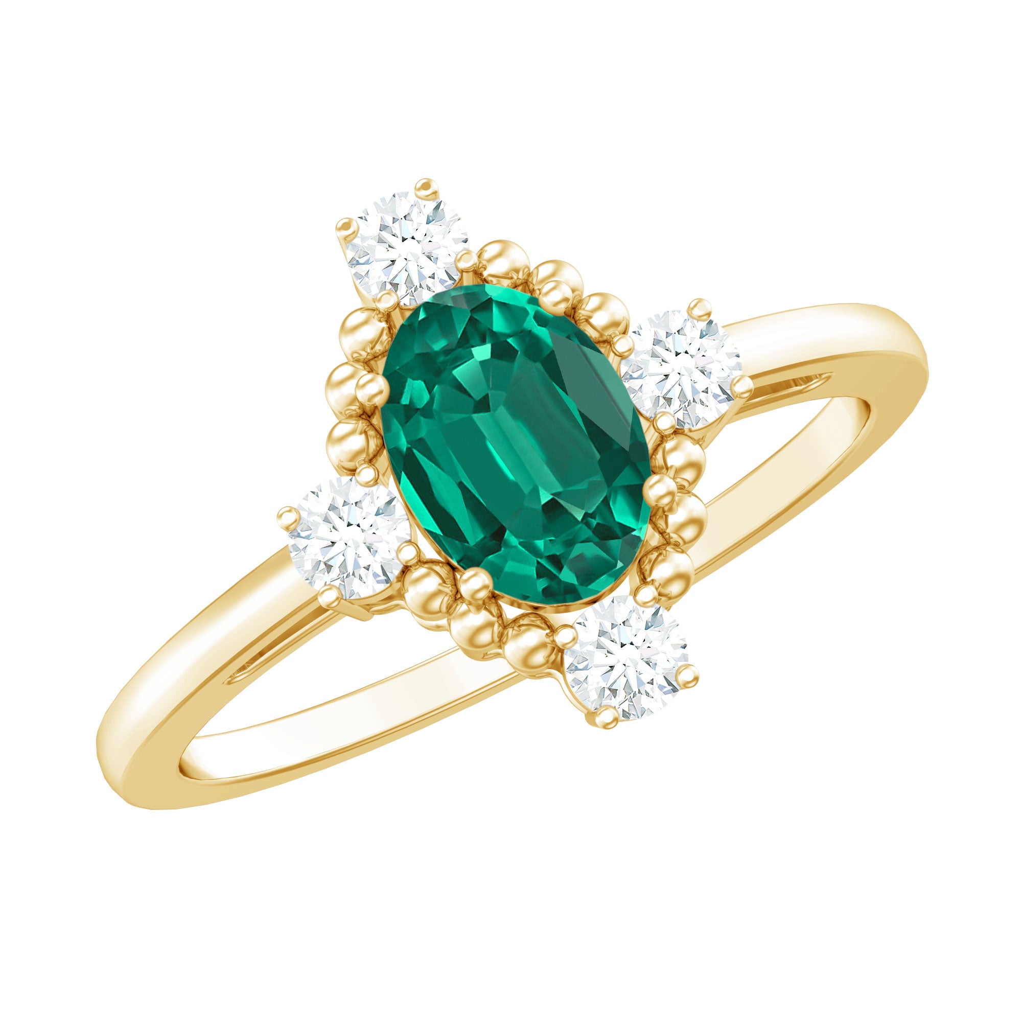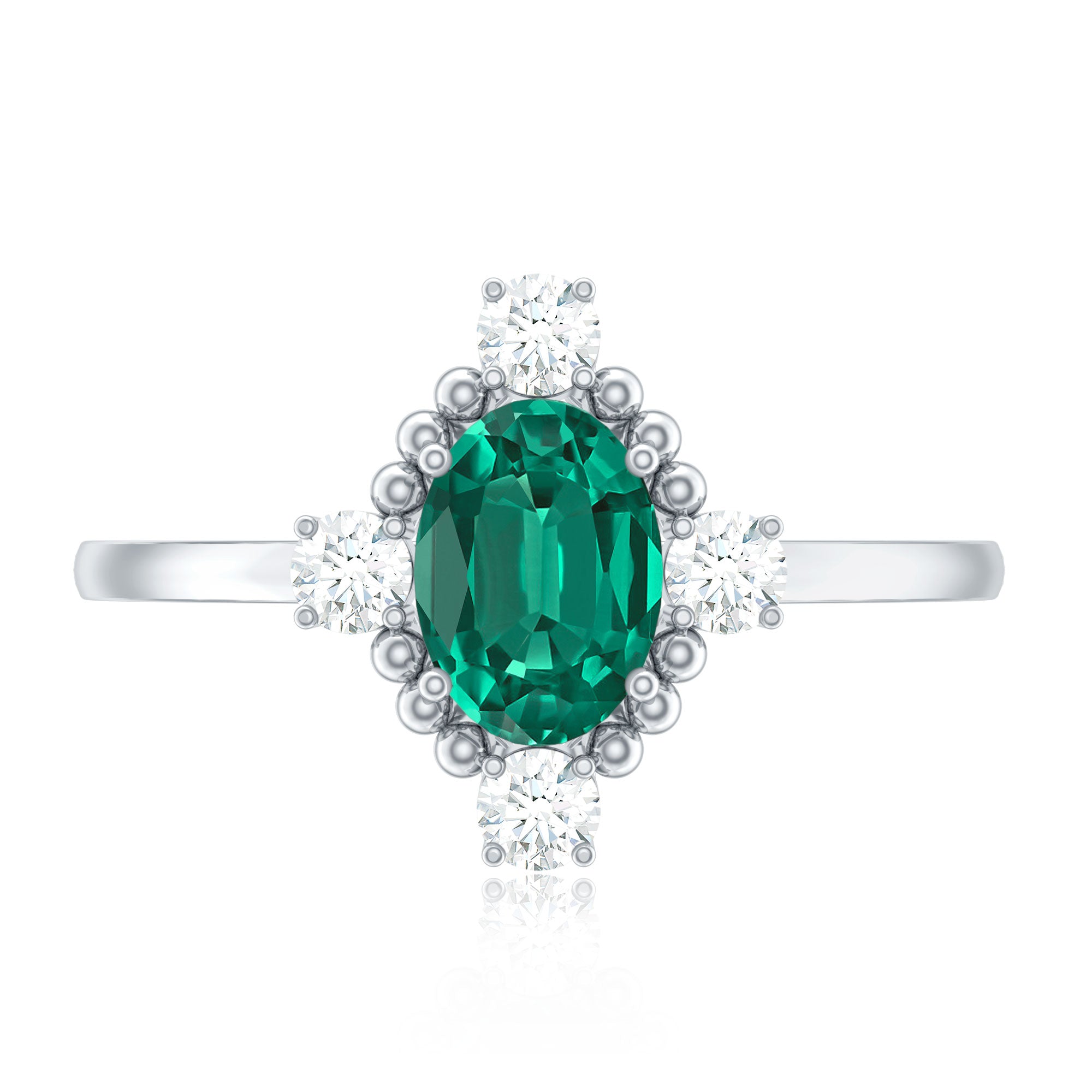 Vintage Inspired Lab Grown Emerald Oval Engagement Ring with Diamond