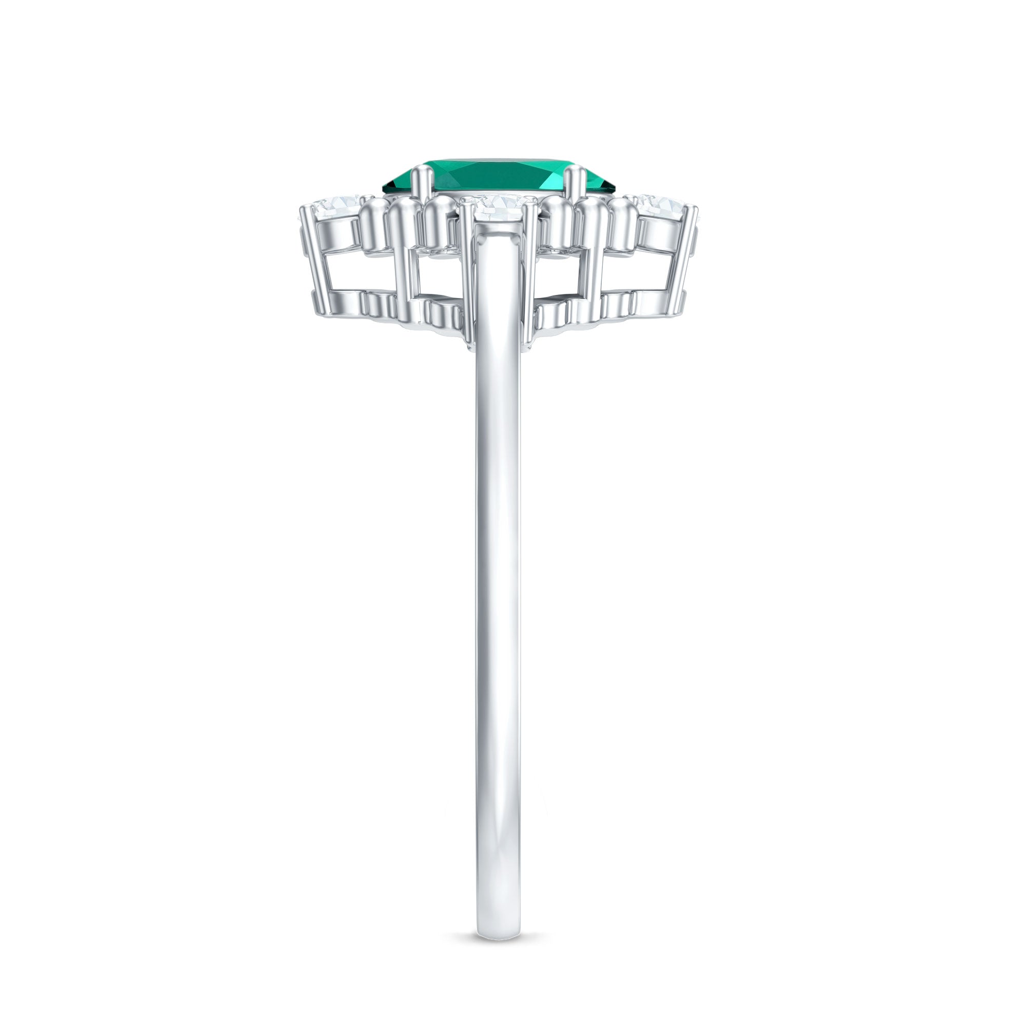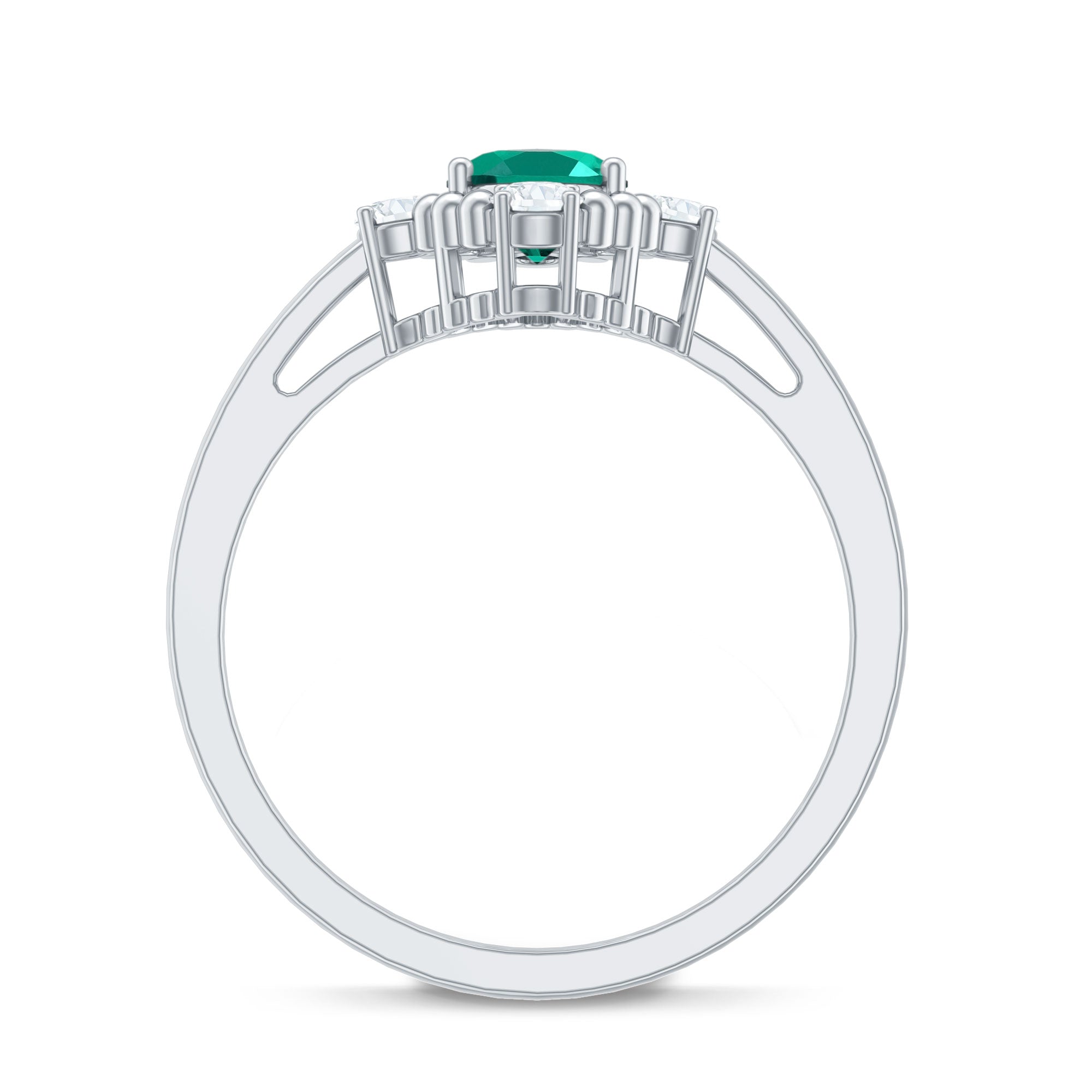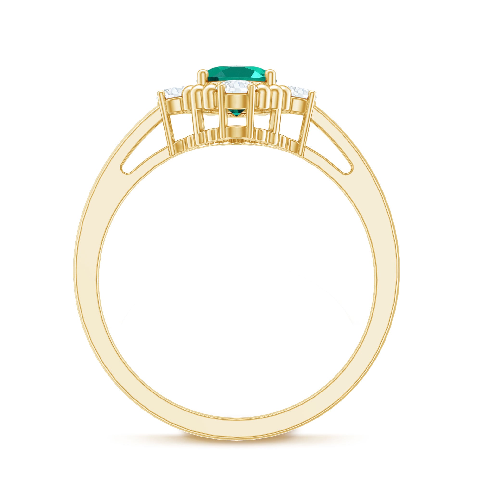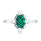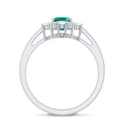 Vintage Inspired Lab Grown Emerald Oval Engagement Ring with Diamond