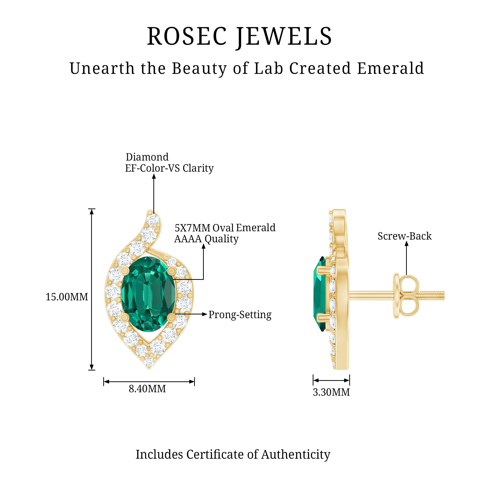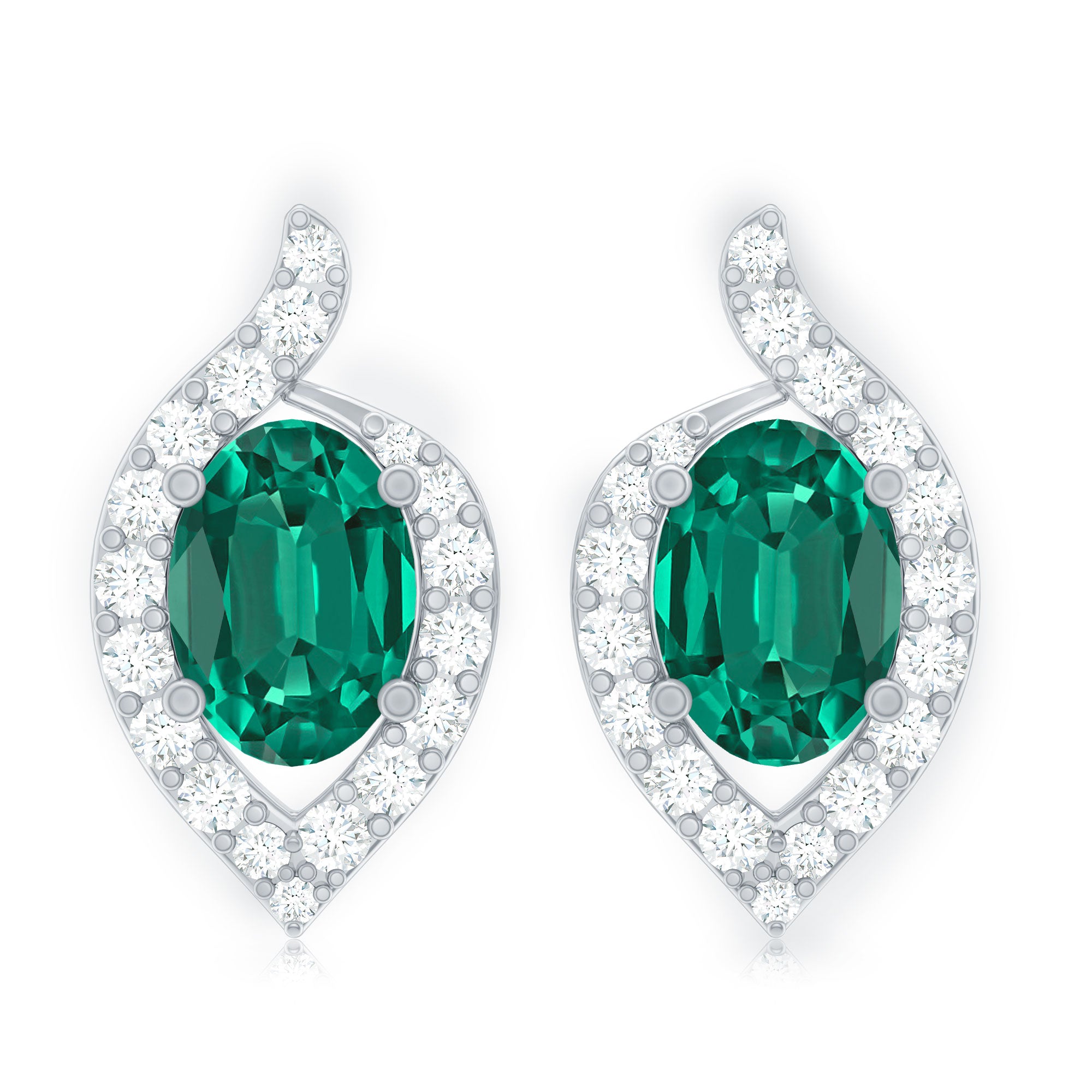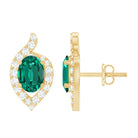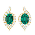 Elegance in simplicity, our Lab Created Emerald Studs boast a timeless charm with 5x7 mm Oval Shaped Emerald (Lab Grown) delicately set in prong setting. The comfort of these Leaf Inspired Stud Earrings allows for extended wear, effortlessly complementing any attire, be it casual or formal, making them the perfect choice for daily adornment. Embrace the enchanting allure of Cultured Emeralds, as these studs showcase Aaaa quality, featuring a vibrant green color. Experience the perfect blend of style and well-being with these Emerald Earrings, suitable for everyday wear. Elevate your look with the subtle grace of these Emerald Diamond Earrings, making a statement in both fashion and holistic charm.