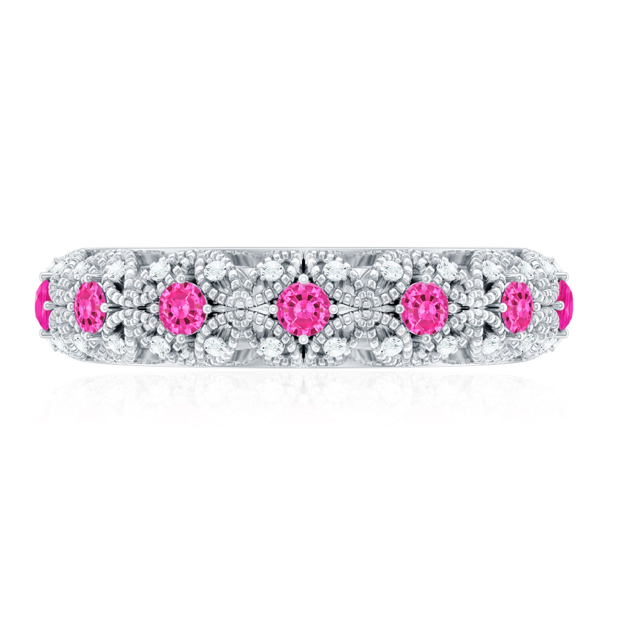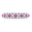 Vintage Inspired Lab Grown Pink Sapphire and Diamond Wedding Band