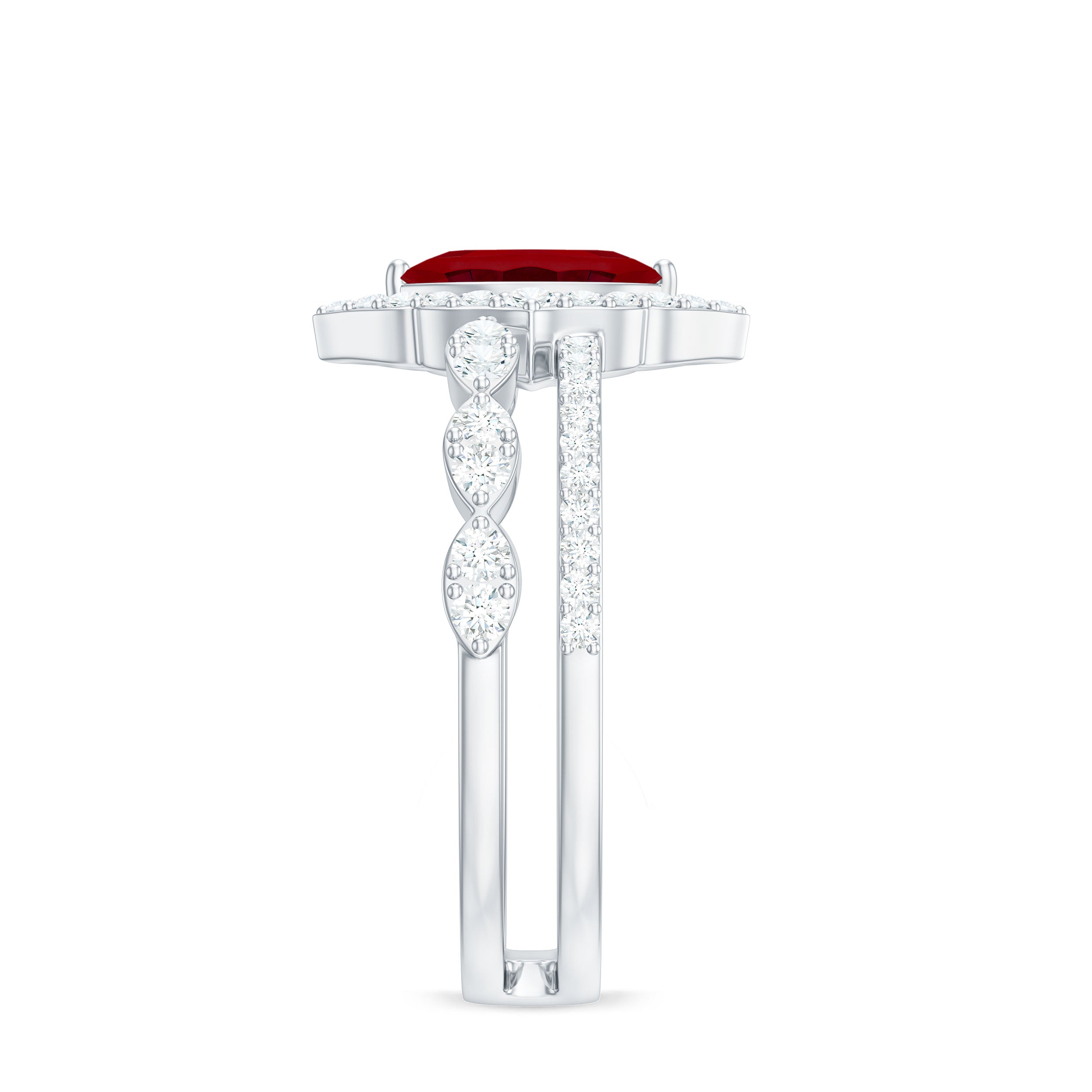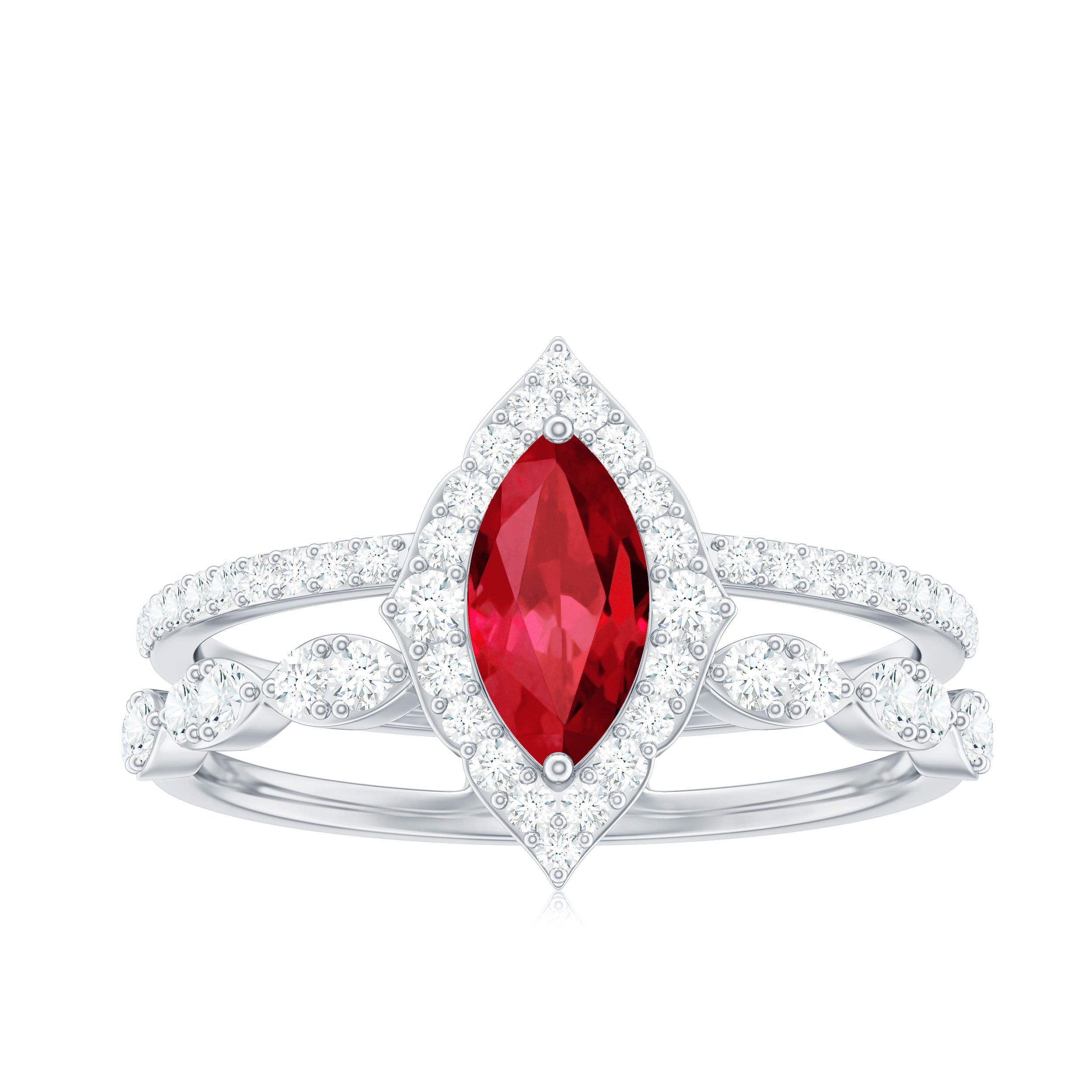 Give your special woman a ring that speaks of love, elegance, and timeless beauty. The Vintage Inspired Engagement Ring from Rosec Jewels is handcrafted with care and features a stunning 4X8 MM marquise shaped lab created ruby at its center. The ruby sits securely in a 2-prong setting, surrounded by a halo of real diamonds arranged in a lovely flower shape. The sparkling diamonds enhance the ruby’s glow, creating a perfect balance between vintage charm and modern brilliance. Every detail is designed to make the Marquise Engagement Ring stand out beautifully while still feeling comfortable to wear every day. Adding to its charm, the double band is finely studded with shimmering diamonds, giving the Vintage Ruby Ring extra sparkle and sophistication. The smooth and secure design ensures a comfortable fit, while the overall look stays elegant and classy. Crafted in premium precious metal, you can choose from different color and purity options to match your taste. Presented in our signature luxury box, this Double Band Ring is a heartfelt promise of love, crafted to be treasured for a lifetime.