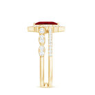 Vintage Inspired Lab Ruby and Diamond Double Band Engagement Ring