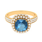 Vintage Inspired London Blue Topaz Designer Engagement Ring with Moissanite