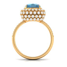 Prepare to captivate attention with this stunning London Blue Topaz Engagement Ring, an ideal accessory for your upcoming special event. At its center lies a striking 8 mm Cushion Cut London Blue Topaz set in Claw Setting that immediately draws the eye with its vibrant blue brilliance. This AAA quality Blue Topaz boasts exceptional color and clarity, imparting a sense of richness and luxury. The Blue Topaz is elegantly encased inside a beaded frame, which introduces texture and an old-world allure, bestowing the Cushion Cut Engagement Ring with a timeless quality. Encircling the central stone is a Halo of glimmering Round Shape Moissanite stones, contributing the perfect touch of sparkle to enhance the overall radiance of the ring. The sleek band maintains an elegant and harmonious appearance, embellished with Round Shape Moissanite stones set in two rows, allowing the topaz to truly stand out. Whether you are preparing for an evening affair or simply wish to elevate your style, this Blue Topaz Engagement Ring is an excellent selection. It is bold, sophisticated and effortlessly stylish, perfect for women who appreciate jewelry that makes a statement while remaining refined. Crafted for both comfort and elegance, this Designer Engagement Ring fits exquisitely and is comfortable to wear throughout the day or night. This Statement Ring arrives in a delightful box, ready to impress from the moment it is unveiled.
