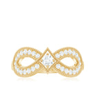 Mark a love that lasts forever with this beautifully crafted Infinity Engagement Ring. Inspired by vintage beauty and designed with deep meaning, this Moissanite Engagement Ring is a true symbol of eternal connection. The Vintage Style Ring features a flowing infinity pattern, representing never-ending love and unity. Along the curves of the infinity design, sparkling round moissanite stones are carefully set to add brilliance and shine. At the center of the ring sits a 3 MM round moissanite set in prong setting and adding a touch of elegance and drawing the eye to the heart of the design. Adding to its charm, the edges of the infinity loop are decorated with delicate beaded detailing, giving the Moissanite Anniversary Ring a vintage-inspired look. These small and thoughtful touches make the ring feel both classic and unique. It is perfect on its own or as a special addition to your bridal or anniversary jewelry. Whether given as a gift or chosen for yourself, this Infinity Moissanite Ring is more than just a piece of jewelry, it is a promise. A reminder that true love never ends and that every moment together is part of a forever story. Simple, elegant, and full of meaning, this Vintage Moissanite Ring is a beautiful way to celebrate a love without limits.