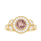 The fire and brilliance of Morganite Engagement Ring will forever shines through in every way, Our Vintage Engagement Ring gives you extra ordinary feel on your big day. This Morganite Vintage Engagement Ring is embellished with Round Shape Morganite in Prong Setting with Diamond Accent and Gold Beaded Details.