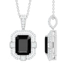Upgrade your elegance with the enchanting Vintage Inspired Halo Pendant. The exquisite Octagon Cut Created Black Diamond, encircled by sparkling Moissanite stones, exudes vintage charm. Set securely in a Prong Setting, this necklace adds sophistication and allure to any outfit.