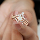 Vintage Inspired Opalescent Diamond Wedding Engagement Ring Set of 3
