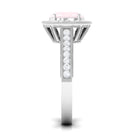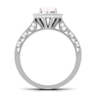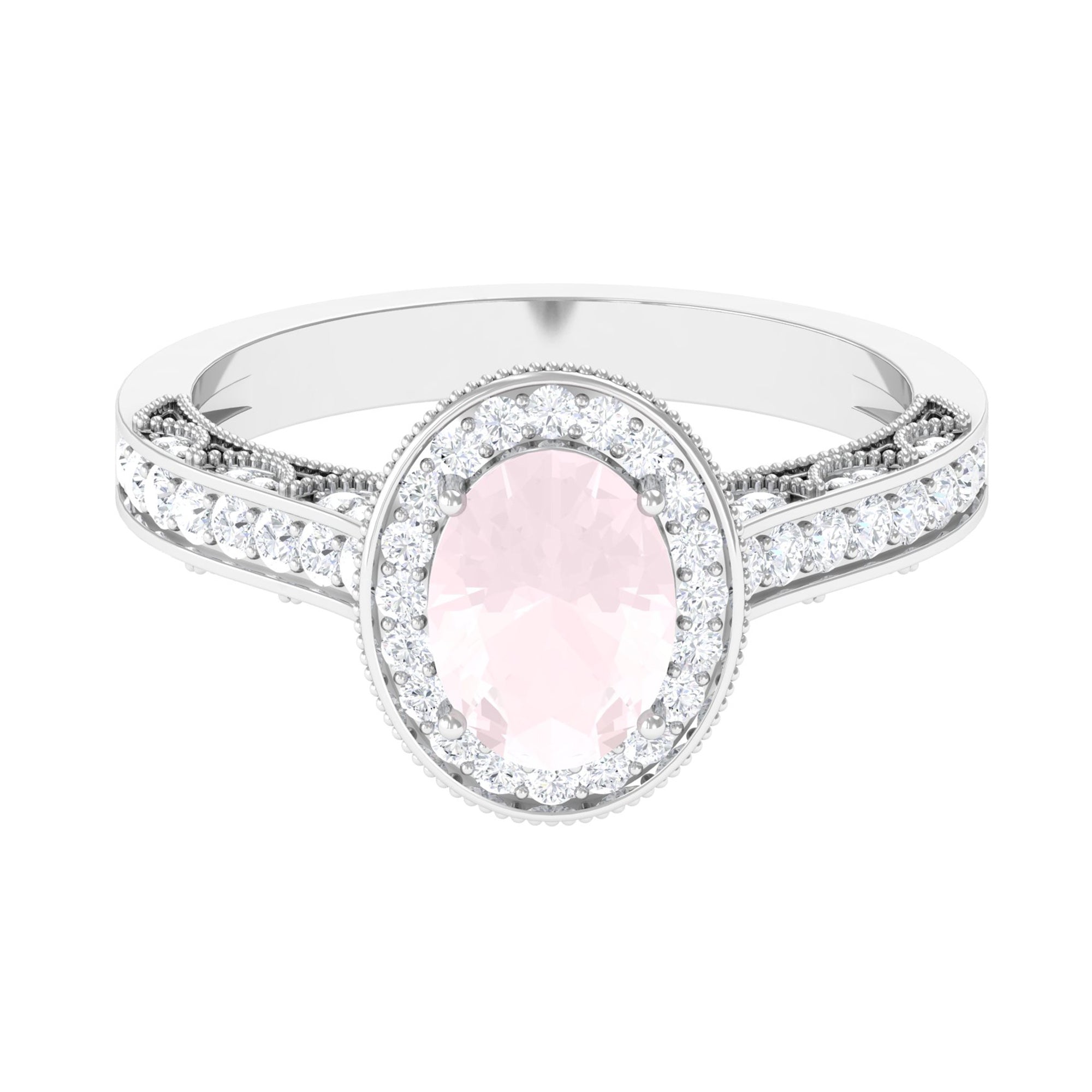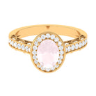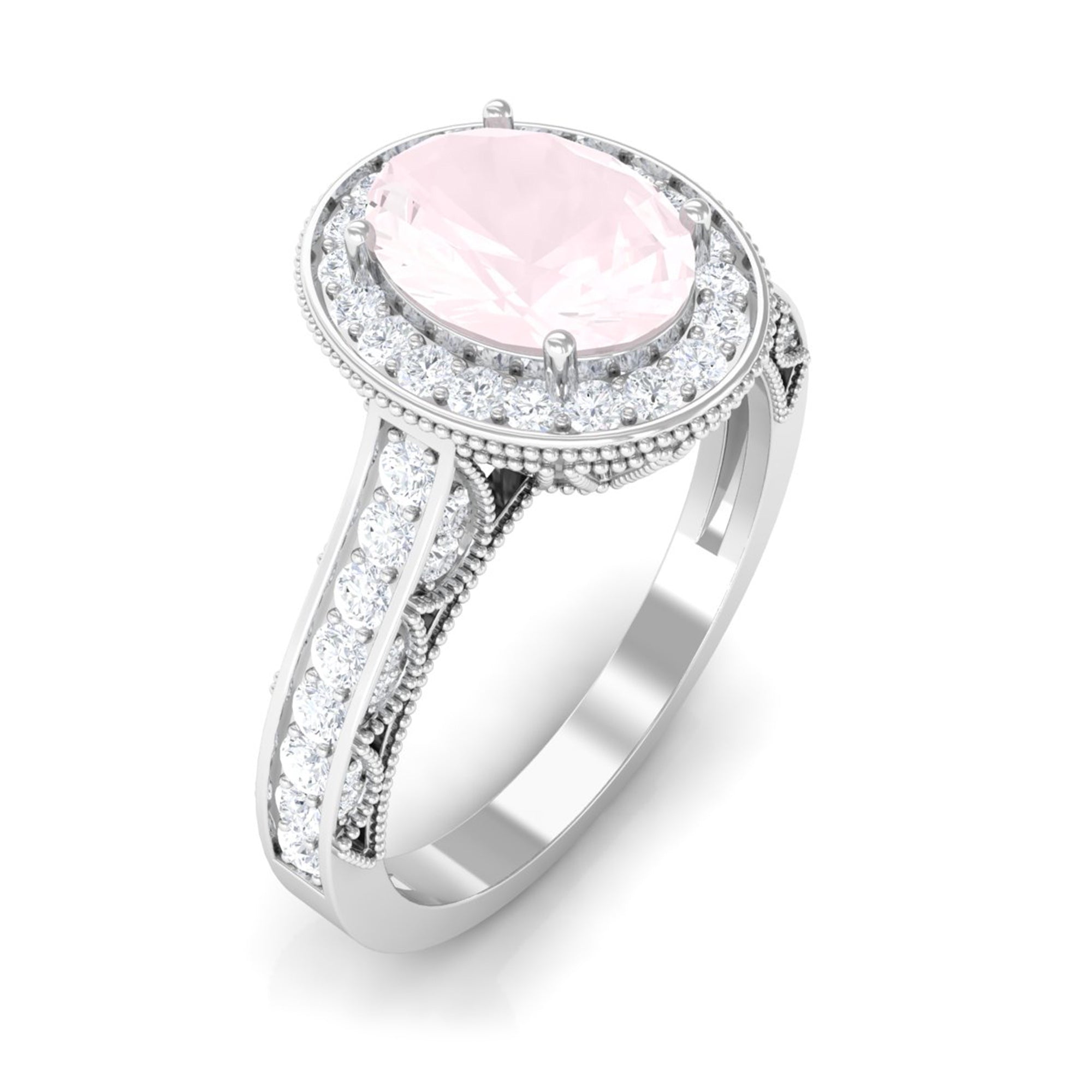 Vintage Inspired Oval Rose Quartz Halo Engagement Ring with Diamond
