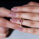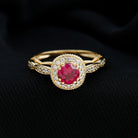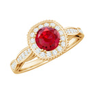 Vintage Inspired Round Created Ruby Engagement Ring with Diamond Halo
