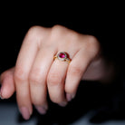 This Created Ruby Antique Ring will make you feel regal. Featuring a round-cut created ruby surrounded by a Diamond halo, with Diamond accents on the shank and gold beading, it is a vintage-inspired piece of jewelry fit for a queen or king. Made of solid gold, it is a stunning choice for those who want to add a touch of elegance to their look.