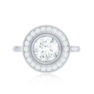 Vintage Inspired Round Moissanite Halo Engagement Ring with Certificate