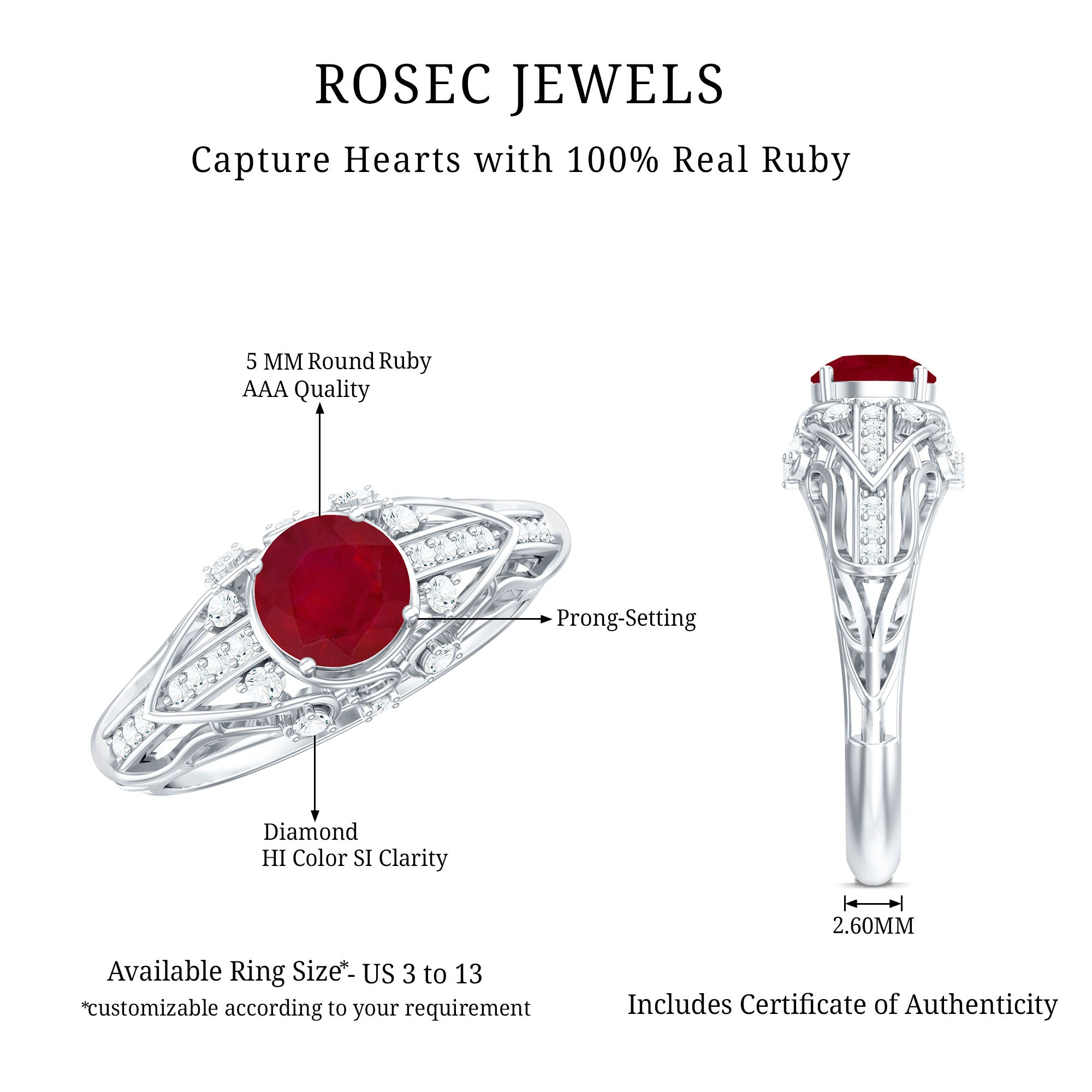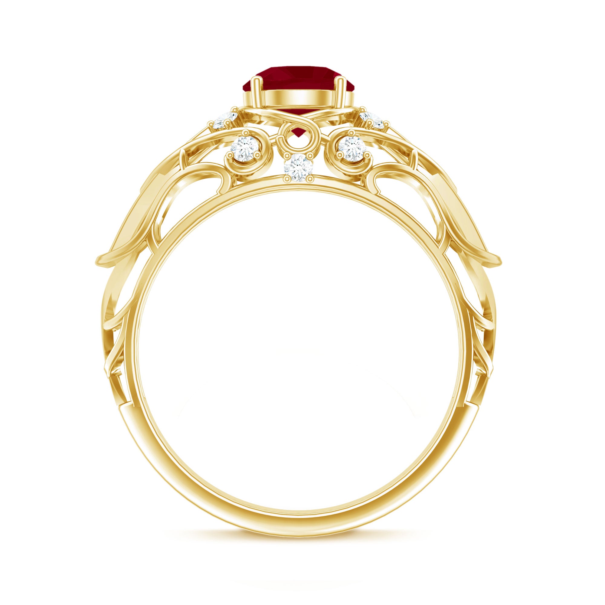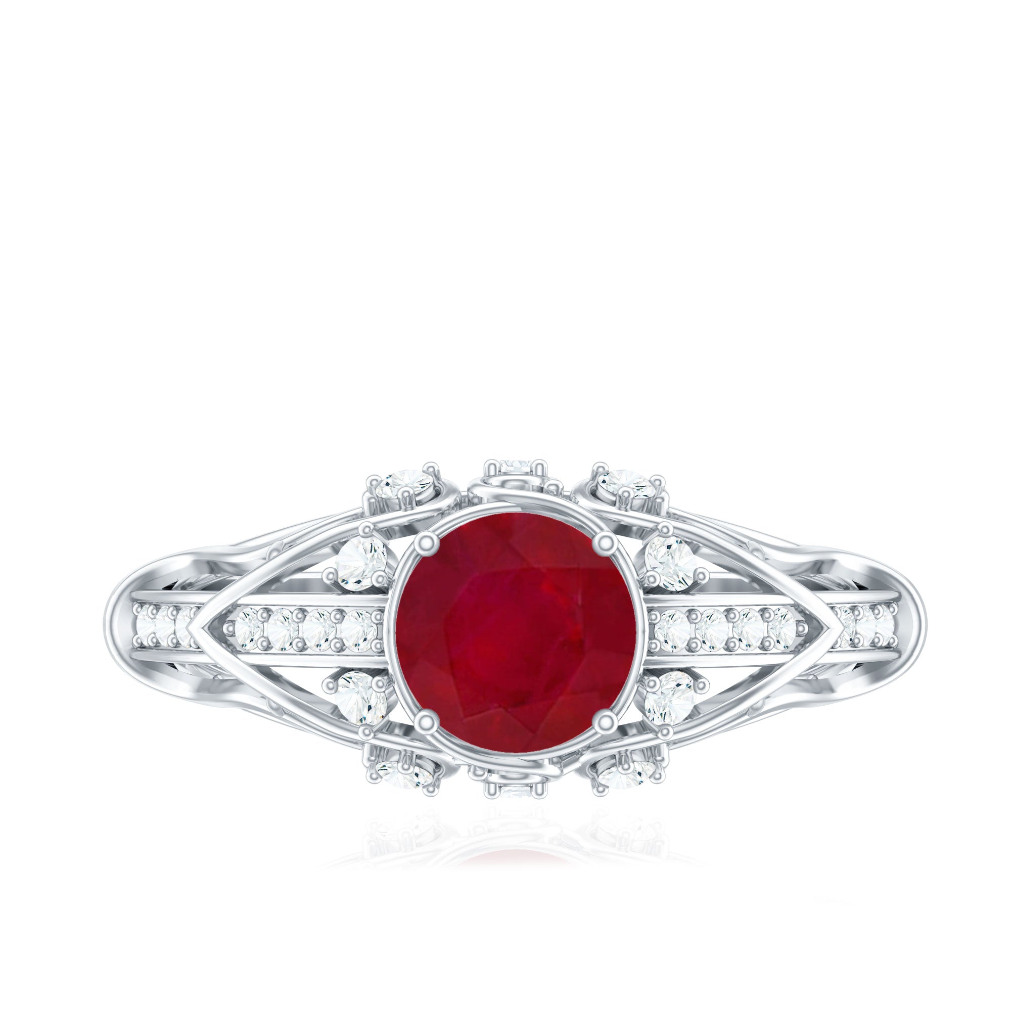 Enhance the spark in your relationship with this stunning Red Ruby and Diamond Ring. This beautiful piece of jewelry features a round-cut ruby as the center gemstone and is accented with Diamond gems. This Art Deco-inspired ring is made from solid gold and is the perfect gift for your significant other. The combination of red ruby and sparkling Diamond creates a unique and eye-catching design that will make any woman feel loved and special. Whether youre celebrating an anniversary, birthday, or just want to show your affection, this ring is the perfect choice. So, express your love in the most beautiful way possible with this magnificent Red Ruby and Diamond Ring.