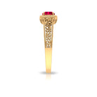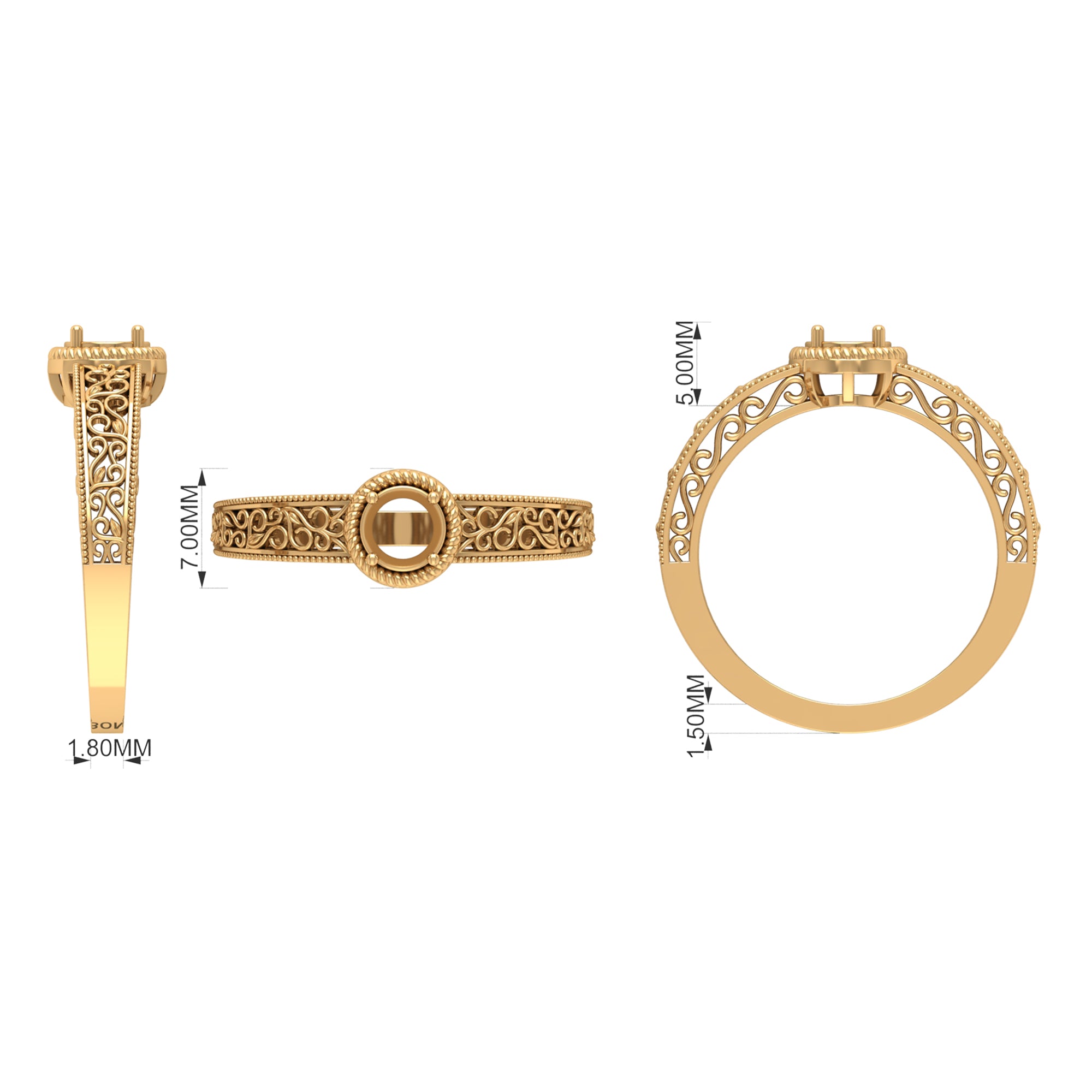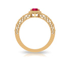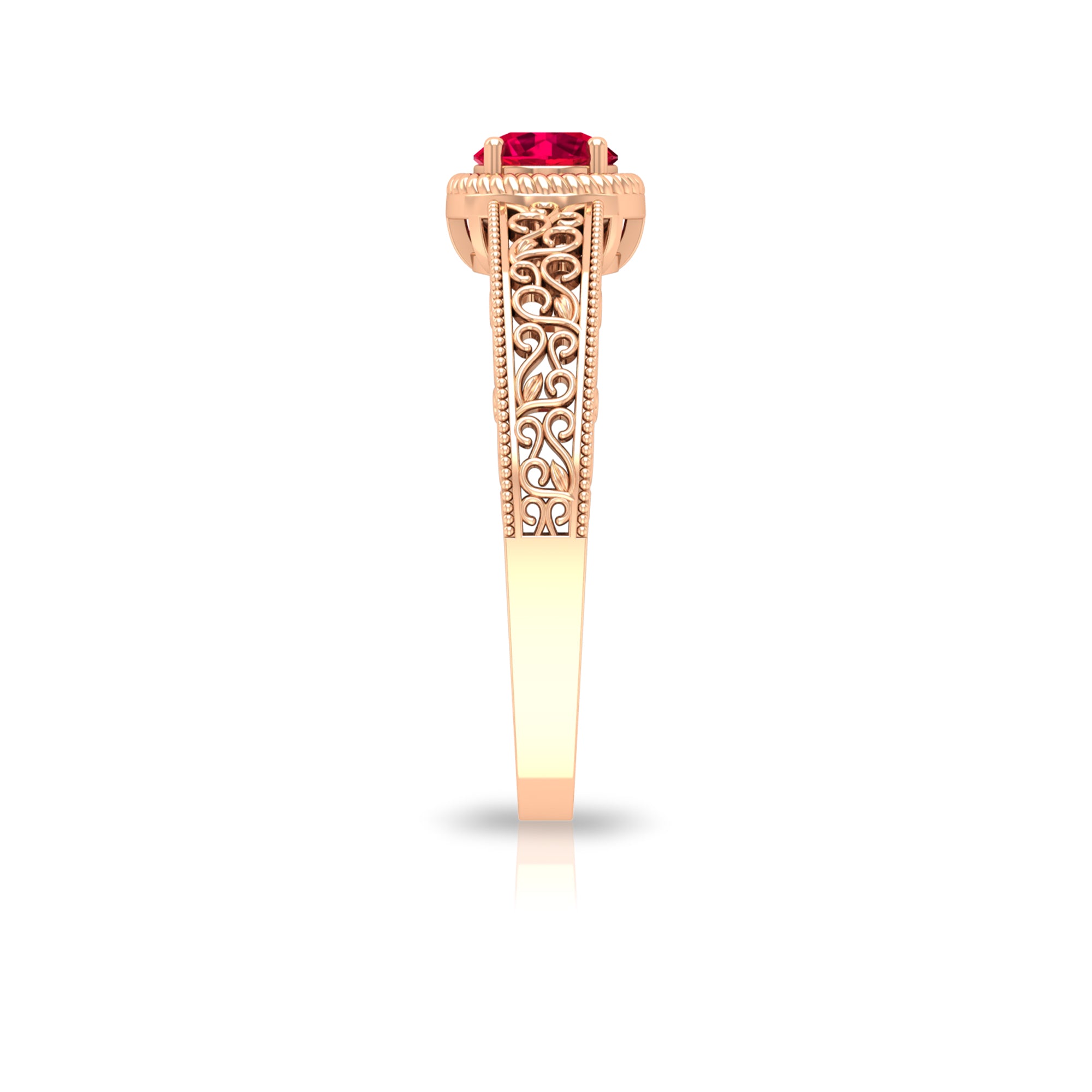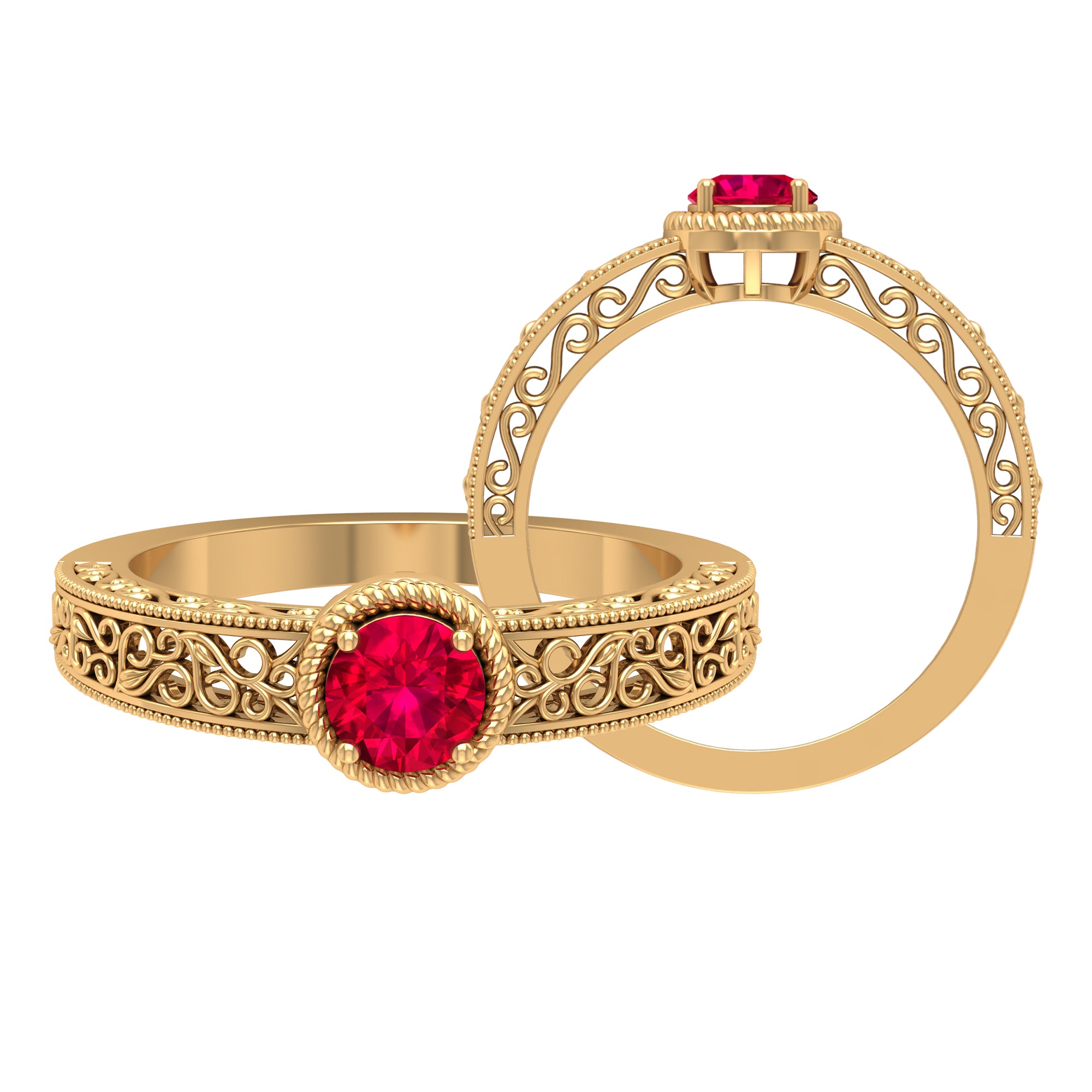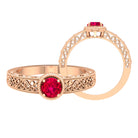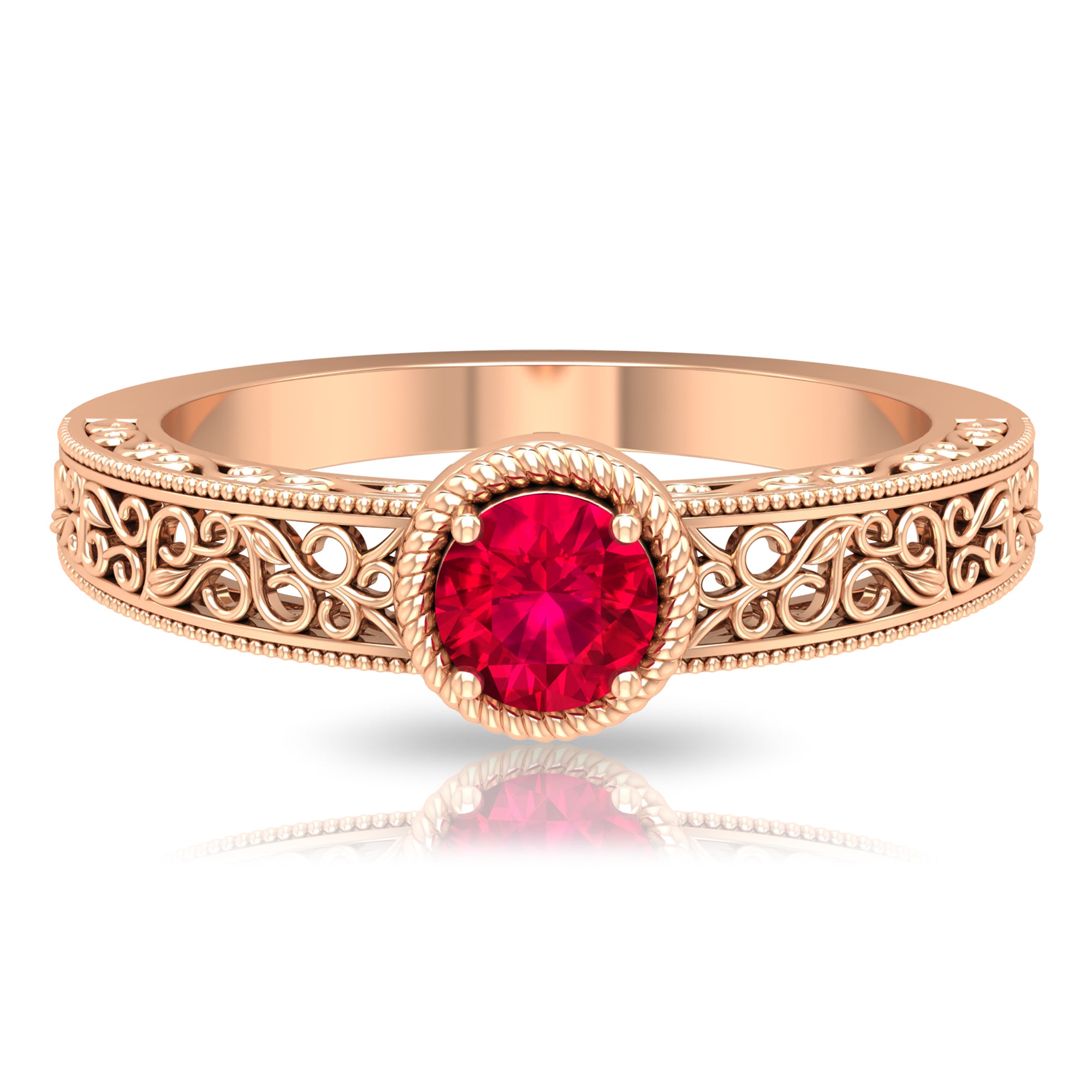 Start your journey of Love with this Beautiful Ruby Engagement Ring. It is embellished with Round Shape Ruby in Prong Setting with Rope Frame. Adorn with Filigree design on the half of the shank to give it a vintage look. Buy this enchanting Ruby Solitaire Engagement Ring for the love of your life and make her eyes glitter.