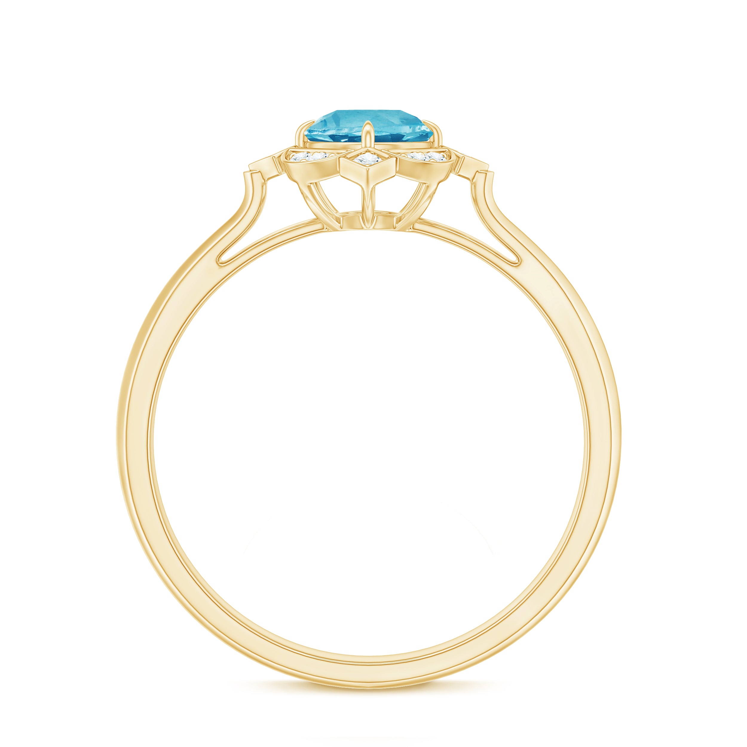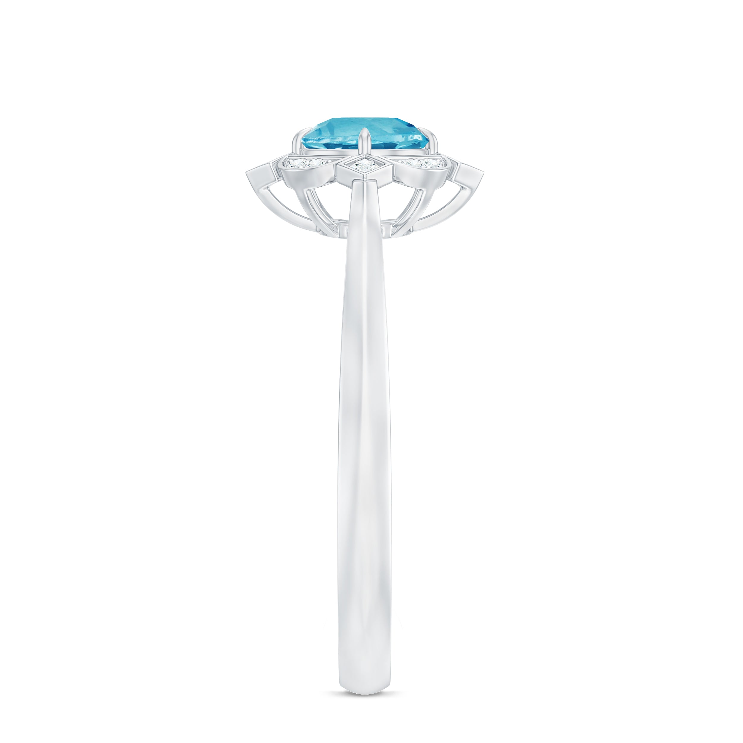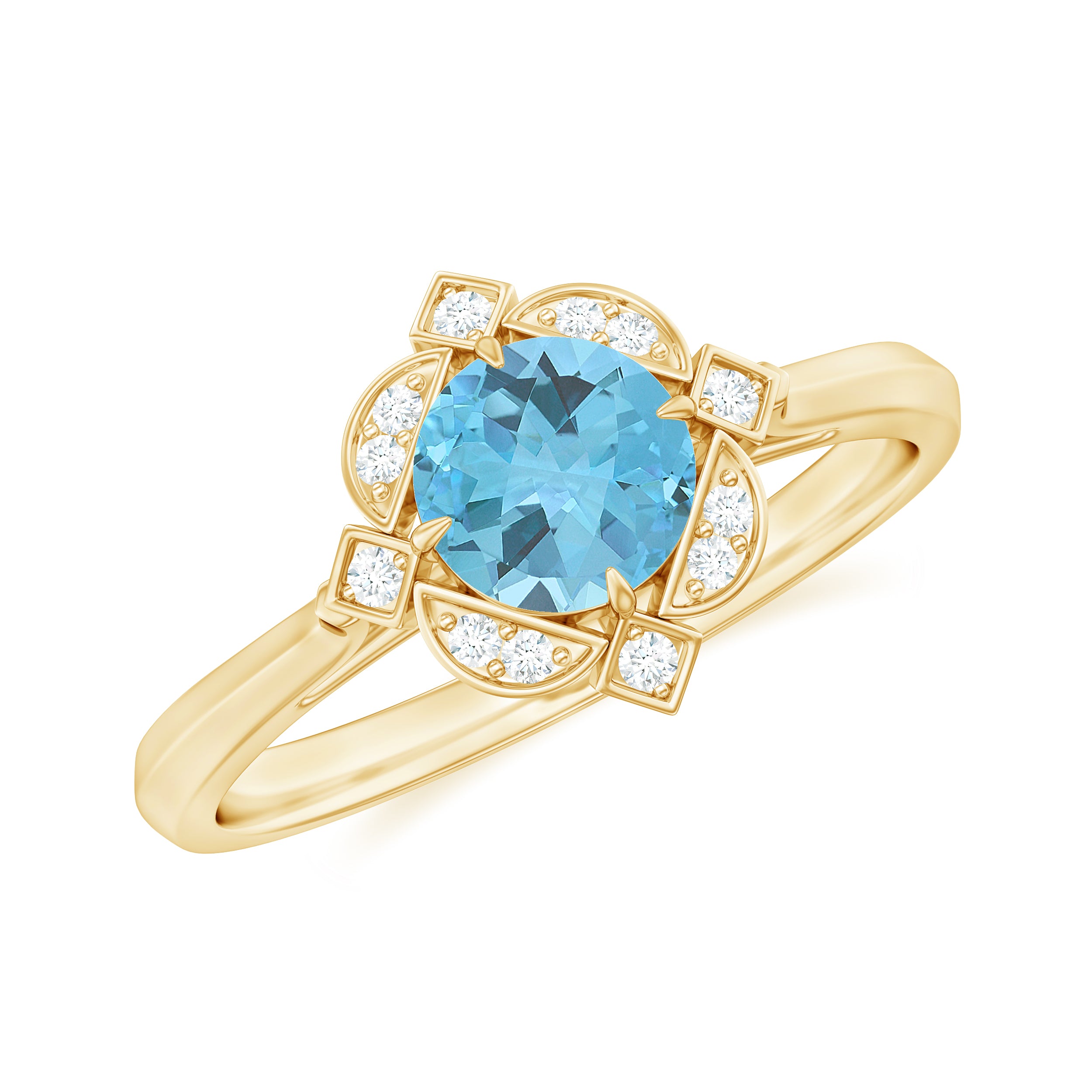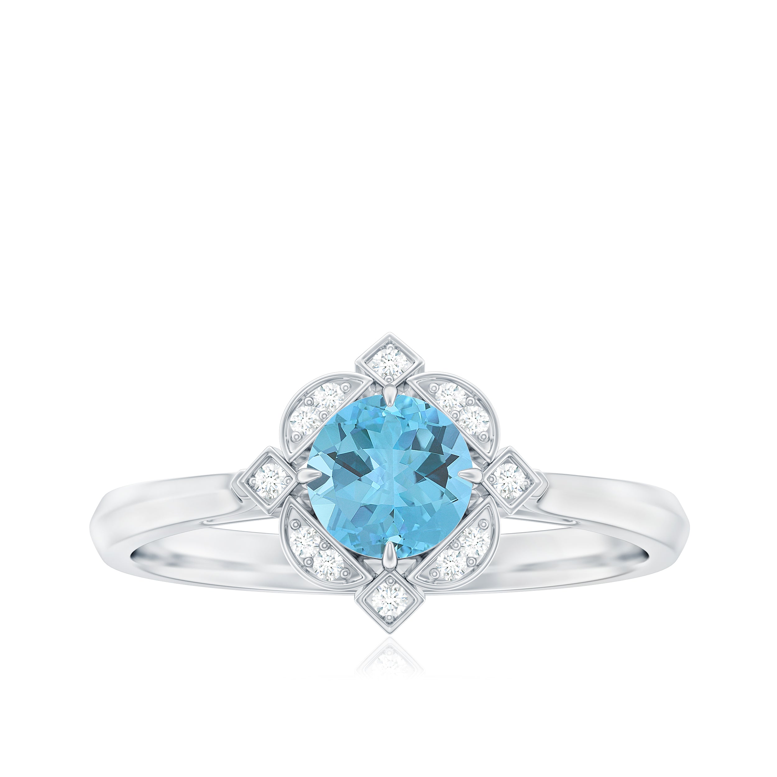 Make a timeless statement with this Sky Blue Topaz Classic Vintage Ring. Featuring a Round Shape Sky Blue Topaz surrounded by a sparkling halo of Diamond stones, this ring is perfect for anniversaries or any other special occasion. Embrace your inner queen and add this beautiful piece to your jewelry collection.