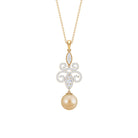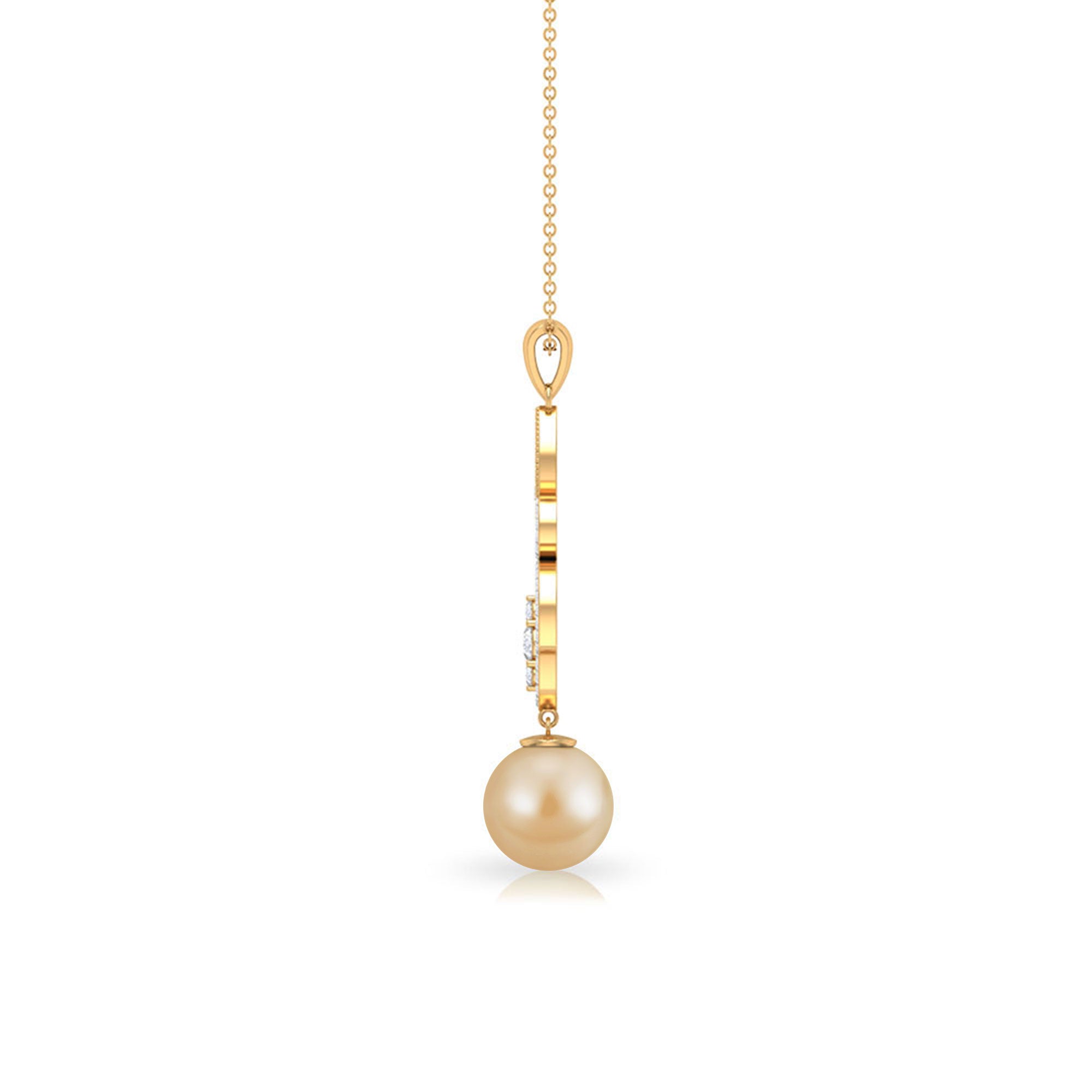Transport yourself to a bygone era with our Vintage Inspired Dangle Pendant. This exquisite piece captures the essence of timeless elegance, featuring a lustrous South Sea Pearl dangling delicately from a unique pattern stubbed with brilliant Moissanite gemstones. With its enchanting blend of old-world charm and modern sparkle, this pearl pendant is a perfect accessory to add a touch of grace and allure to any ensemble.