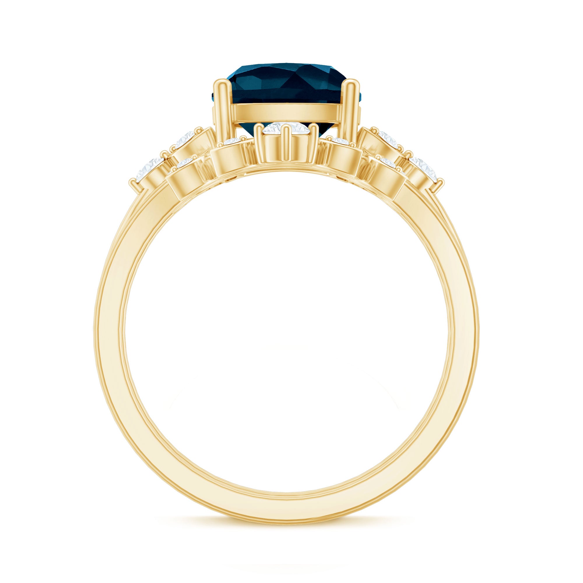 Vintage London Blue Topaz and Diamond Engagement Ring Set