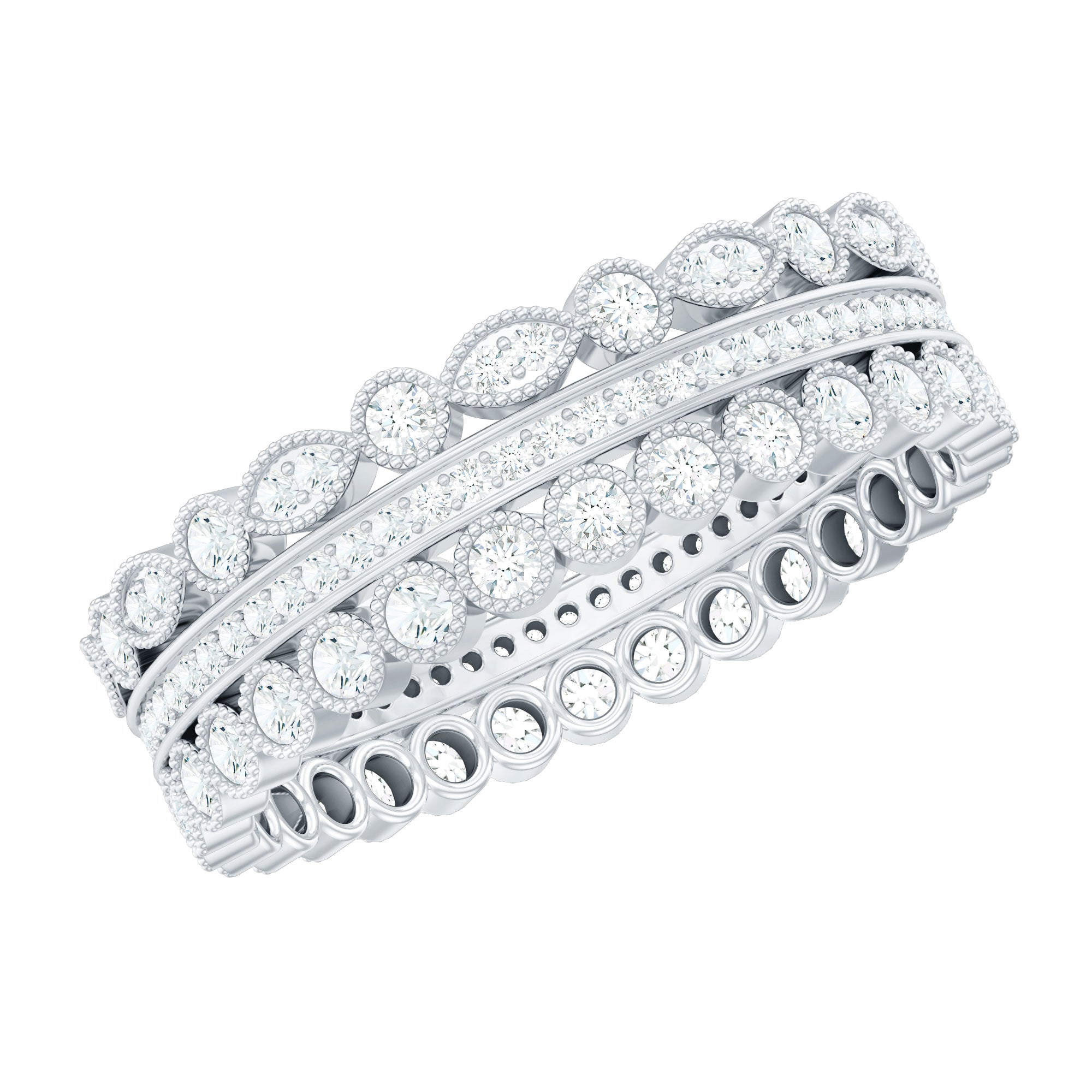 This Three Row Wedding Band is the perfect blend of vintage beauty and modern brilliance. Designed with care and creativity, this Eternity Band features three distinct rows of shimmering moissanite stones, each thoughtfully arranged to bring a different touch of texture and sparkle. The centerpiece of the design is the continuous loop of round cut moissanites, while the other rows highlight beaded bezel set stones and a scalloped design that softly hugs the center row. The intricate beaded detailing is not only beautiful but gives the Vintage Wedding Band a timeless, heirloom-like feel that stands out from modern minimal designs. The combination of these rows creates a stacked look in a single band, a gorgeous, layered aesthetic without the need for multiple rings. Whether worn as a wedding band, anniversary ring, or statement piece, it delivers both elegance and meaning. Crafted to be comfortable for daily wear, it wraps the finger with a perfect balance of sparkle and sophistication. Available in a wide range of sizes, this Moissanite Anniversary Band is a thoughtful gift or personal keepsake that captures the essence of love, memory, and style.