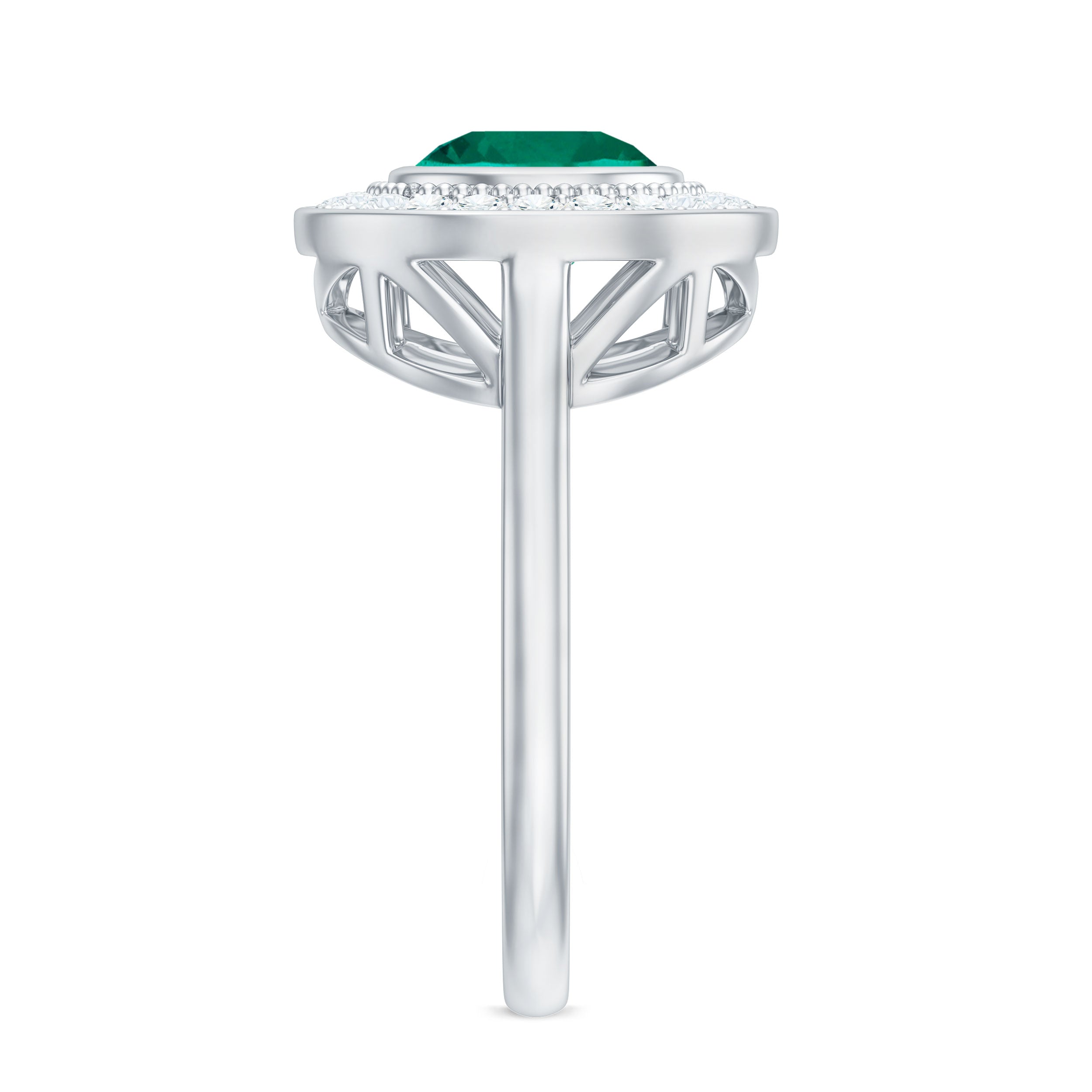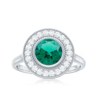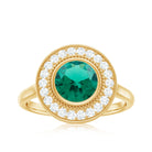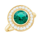 Vintage Looking 8 mm Lab Grown Emerald Engagement Ring with Halo