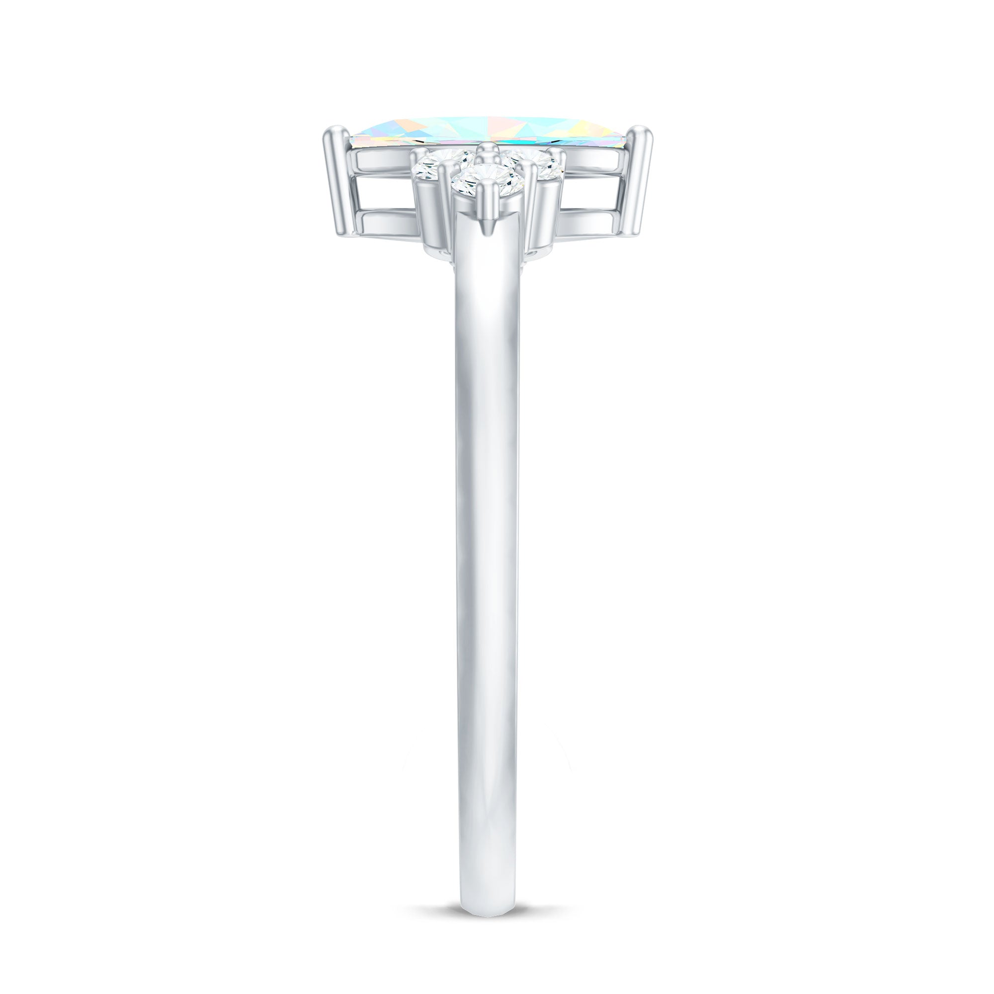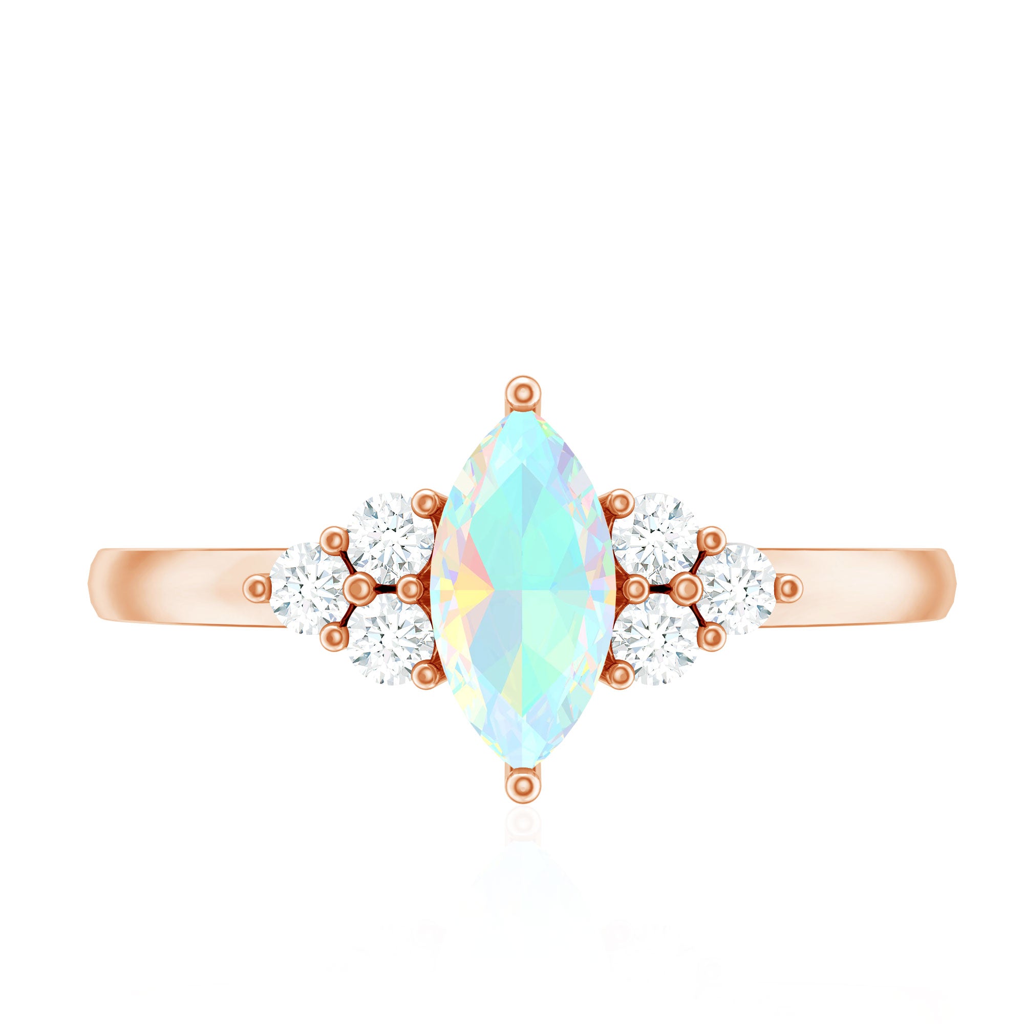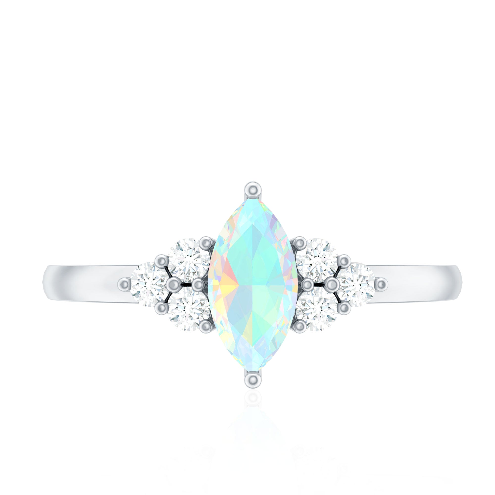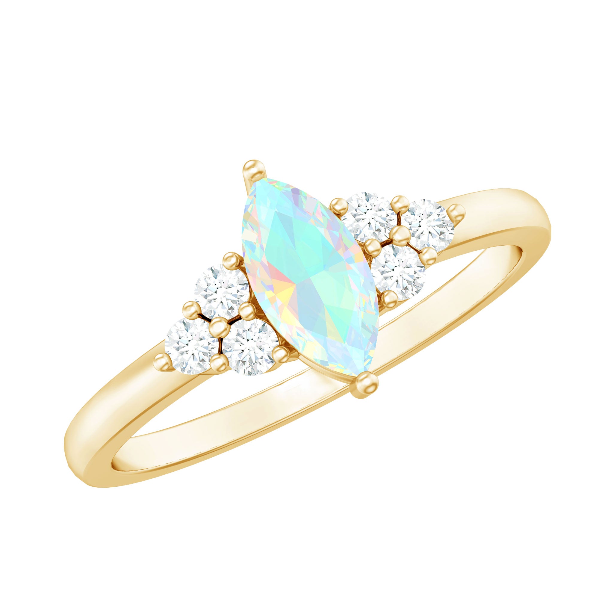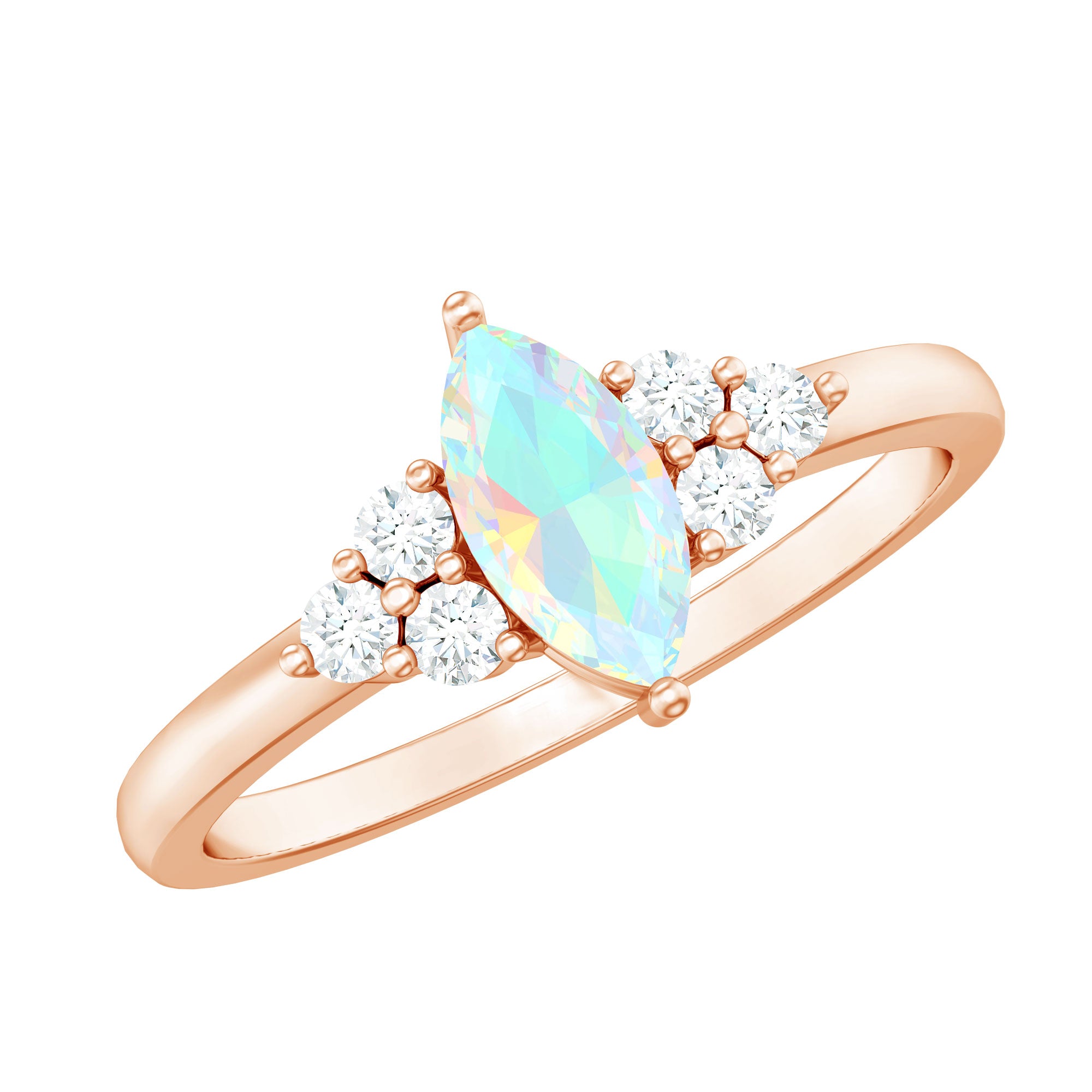Vintage Looking Rainbow Opal Marquise Engagement Ring with Diamond Trio