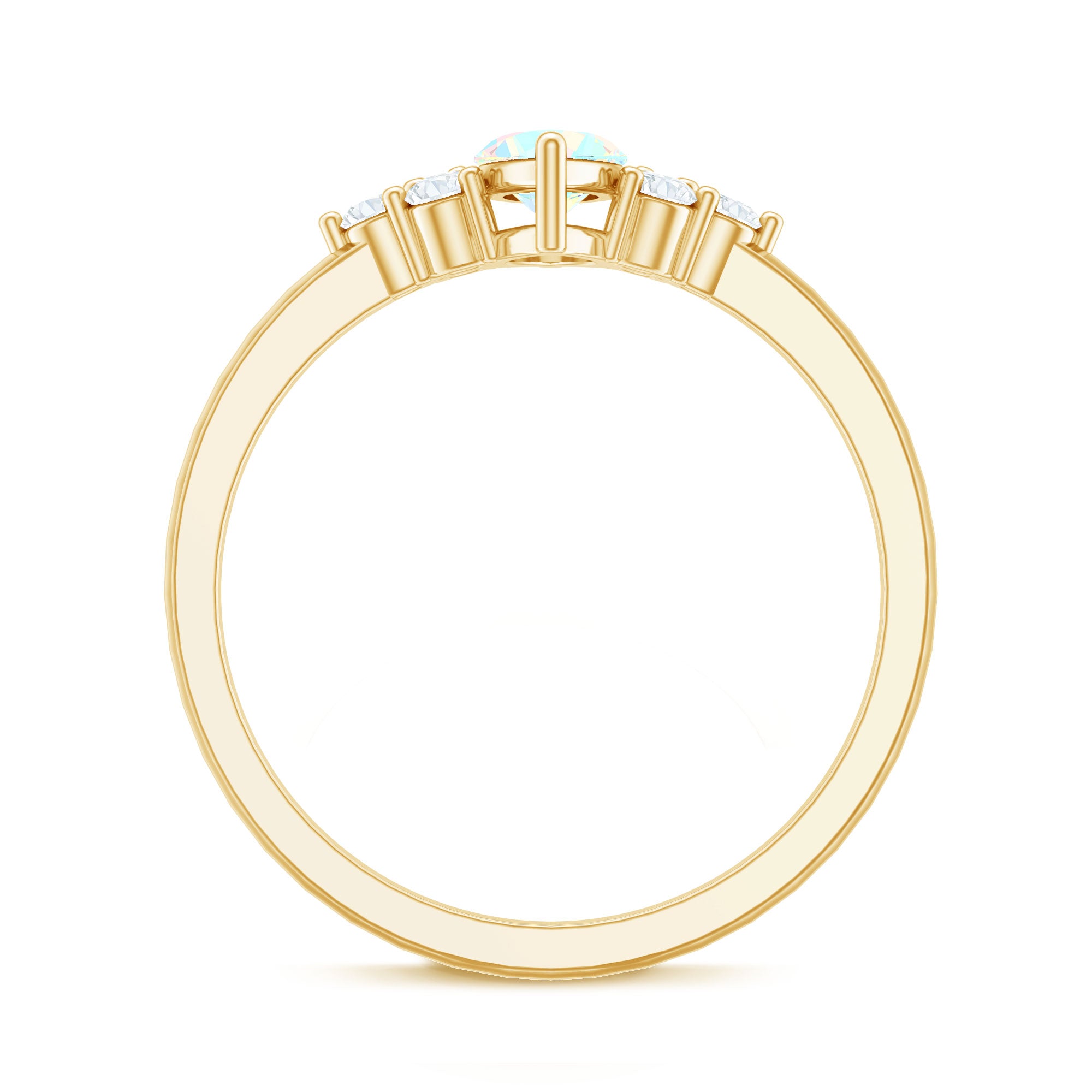 Rainbow opal is admired for its luminous surface and flashes of multiple colors that change with movement and light. Each stone displays unique patterns, ensuring that no two rings appear exactly alike.