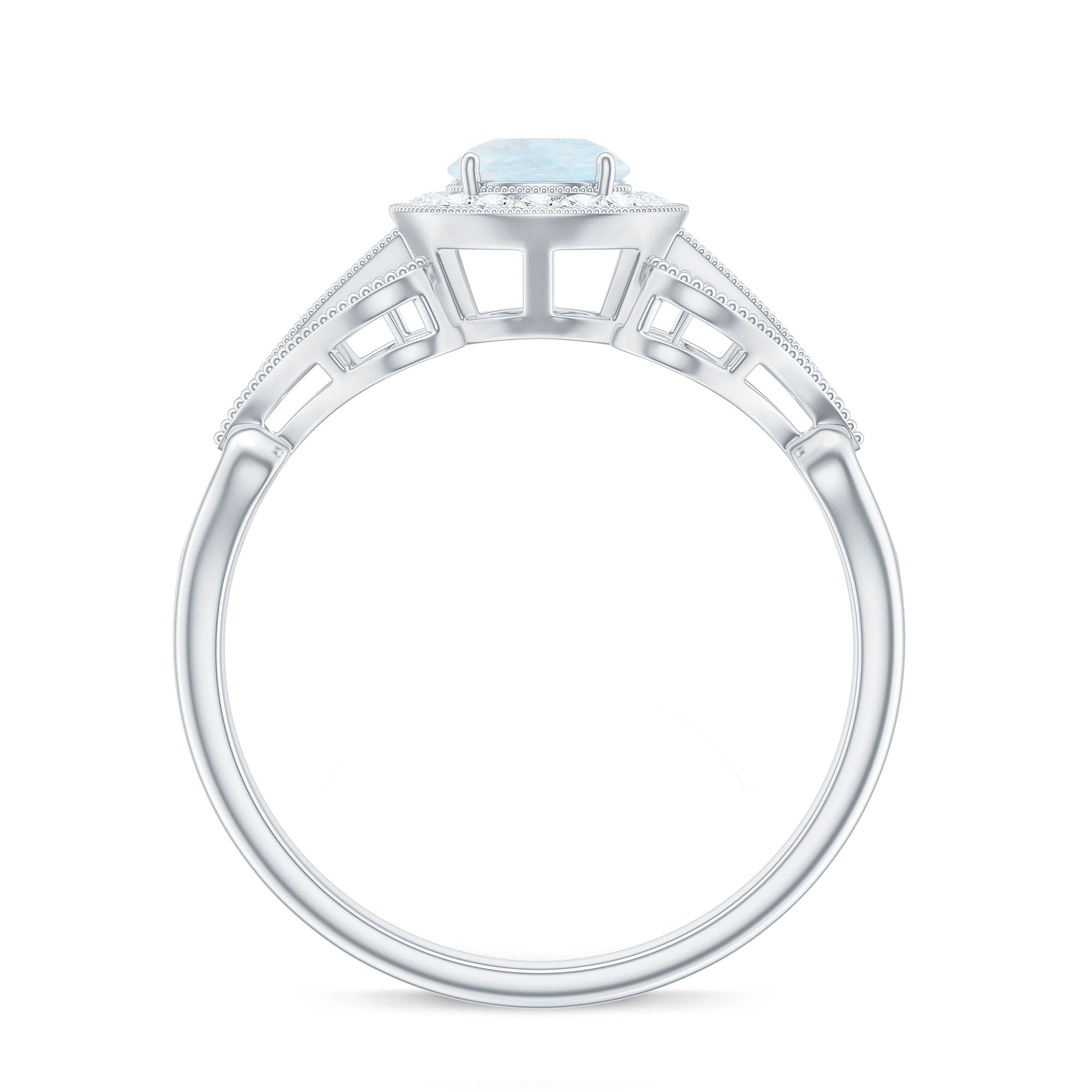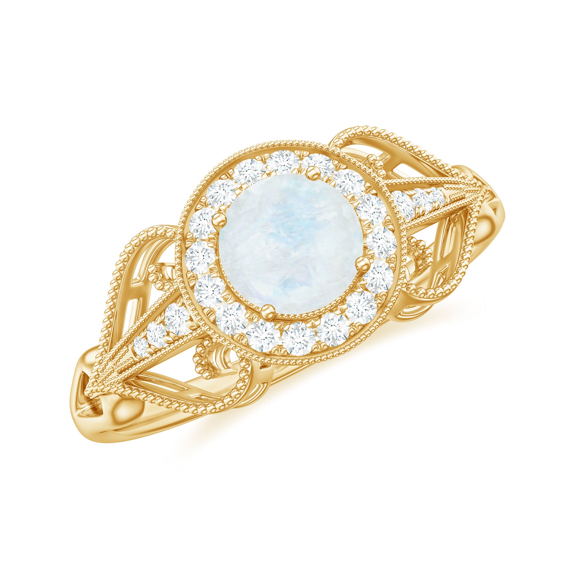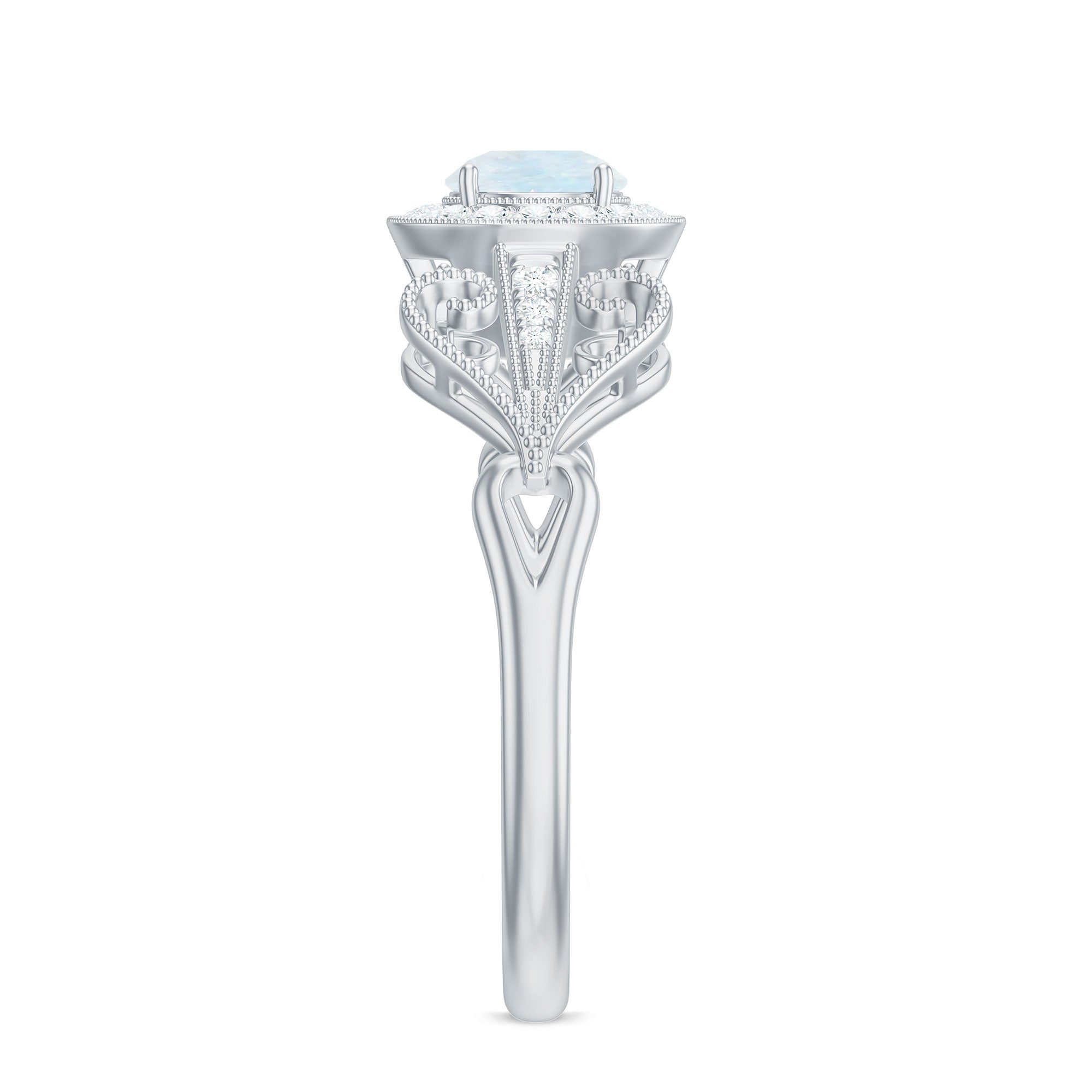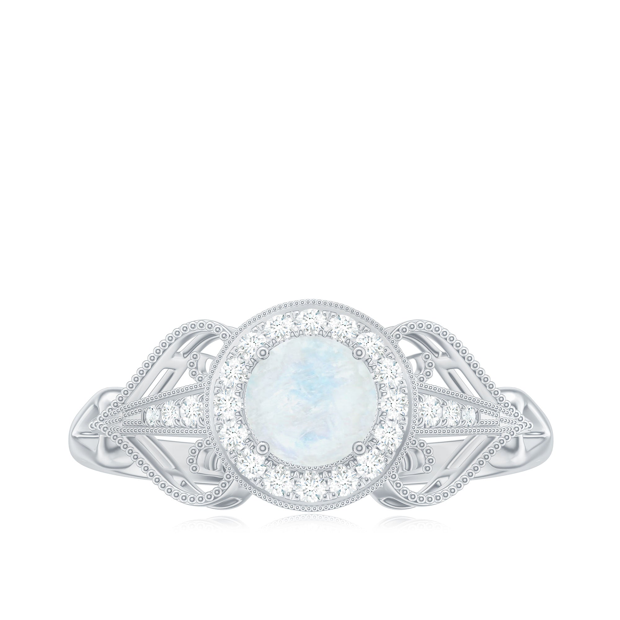 Vintage Moonstone Diamond Engagement Ring with Beaded Detail