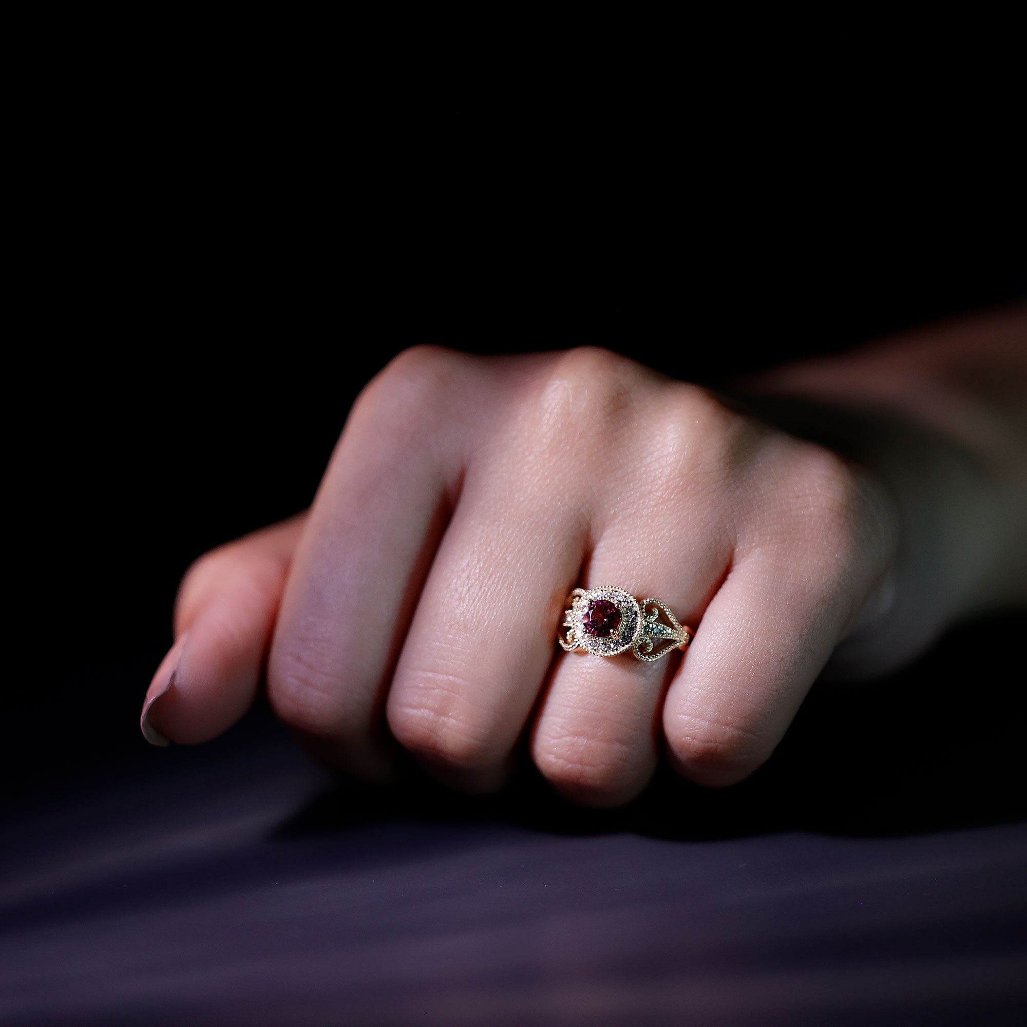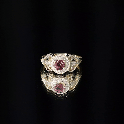 The brightness of Pink Tourmaline makes this vintage ring more appealing. The Pink Tourmaline Engagement Ring is embellished with Round Diamond Accent, glistening on the shank beautifully. The Pink Tourmaline Diamond Engagement Ring is accentuated with Beaded Gold, make your significant feel more precious with this Pink Tourmaline Gold Ring.