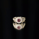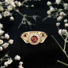 Vintage Pink Tourmaline Diamond Engagement Ring with Gold Beaded Detail