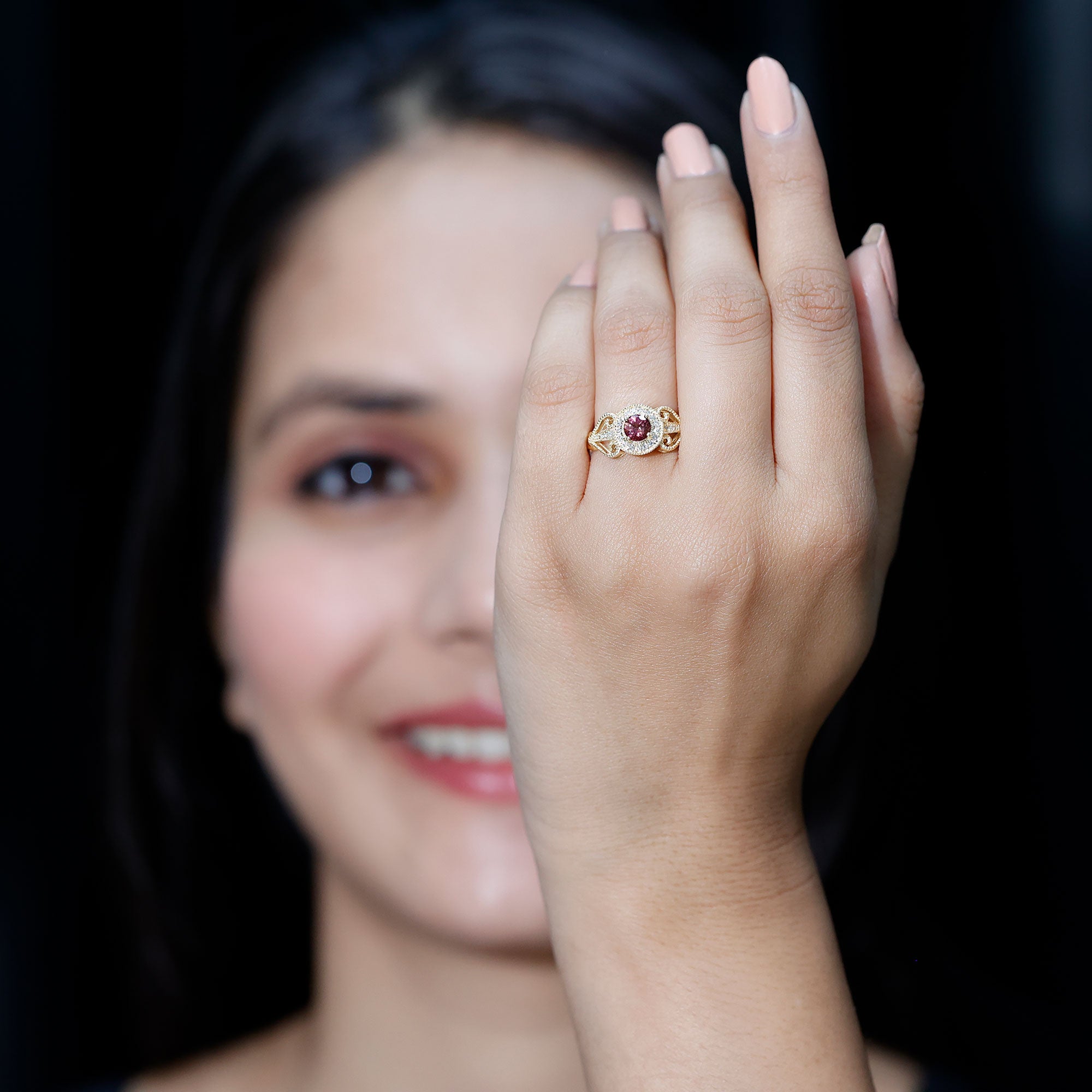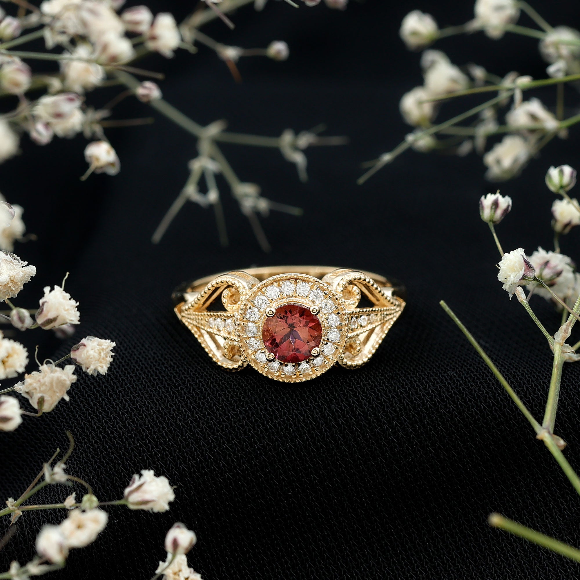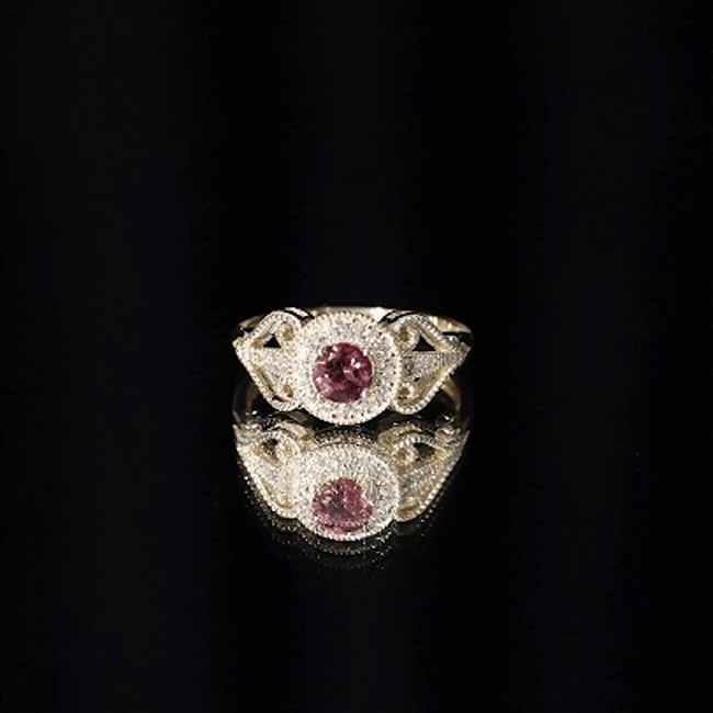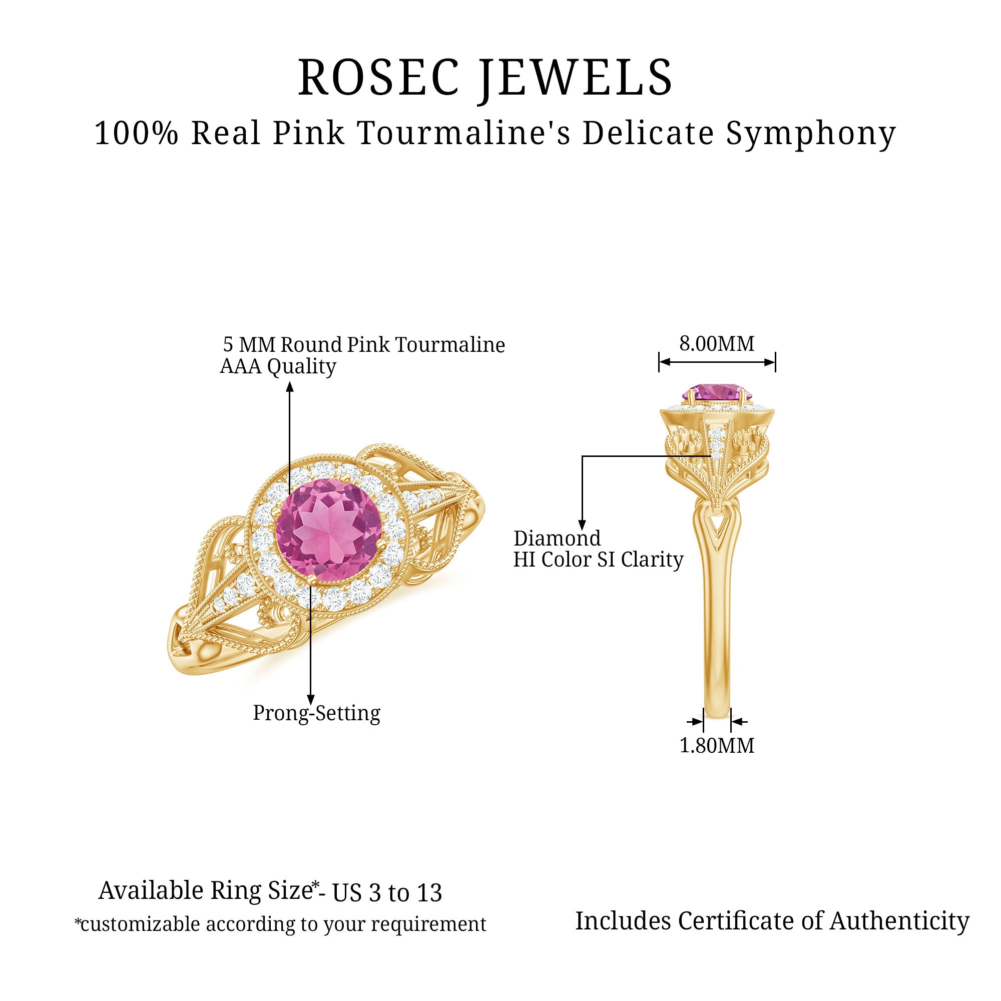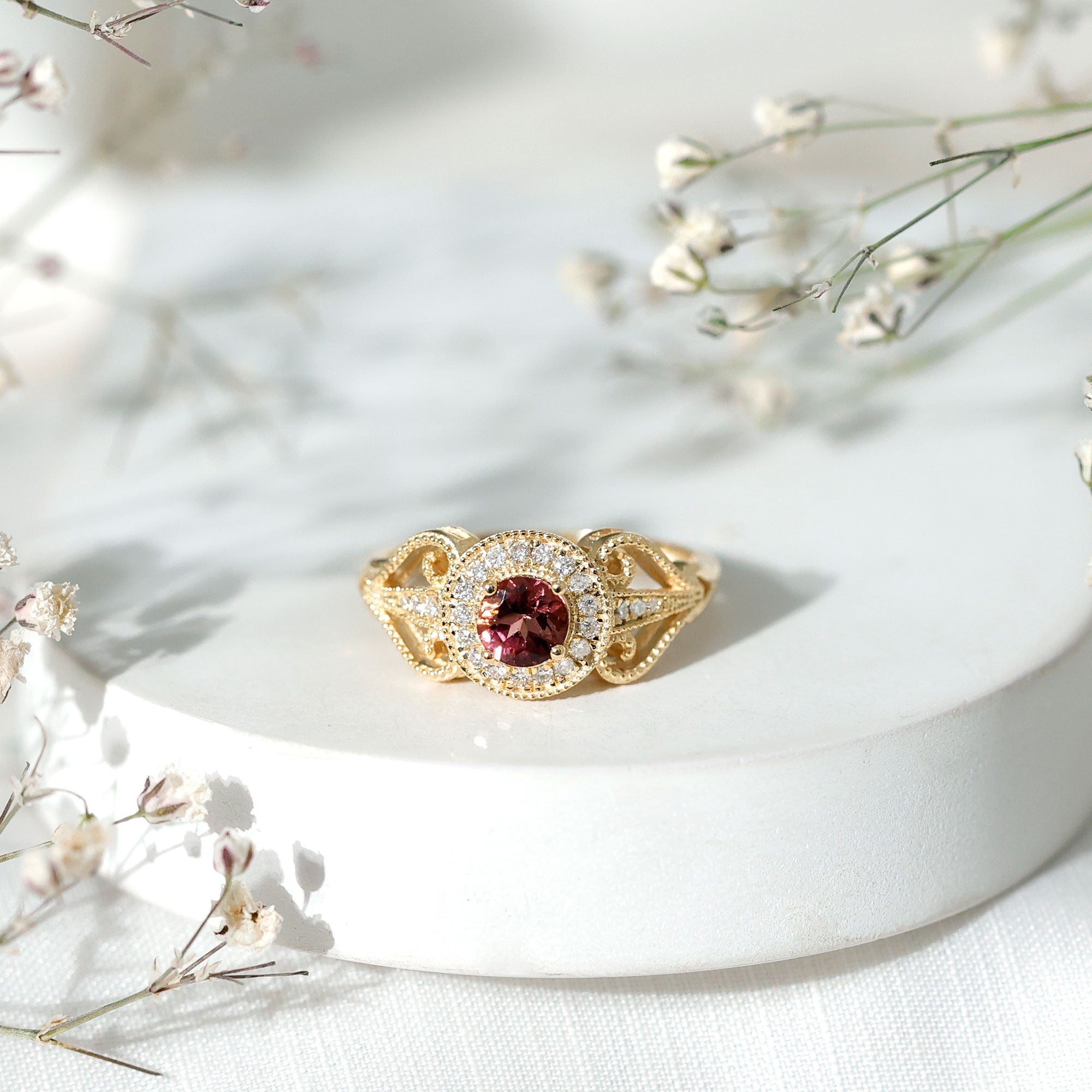 Vintage Pink Tourmaline Diamond Engagement Ring with Halo