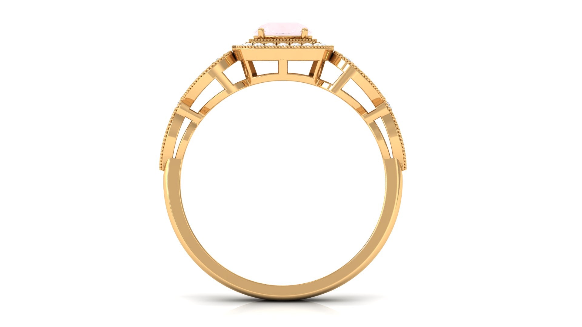 Vintage Rose Quartz and Diamond Milgrain Engagement Ring