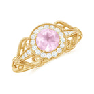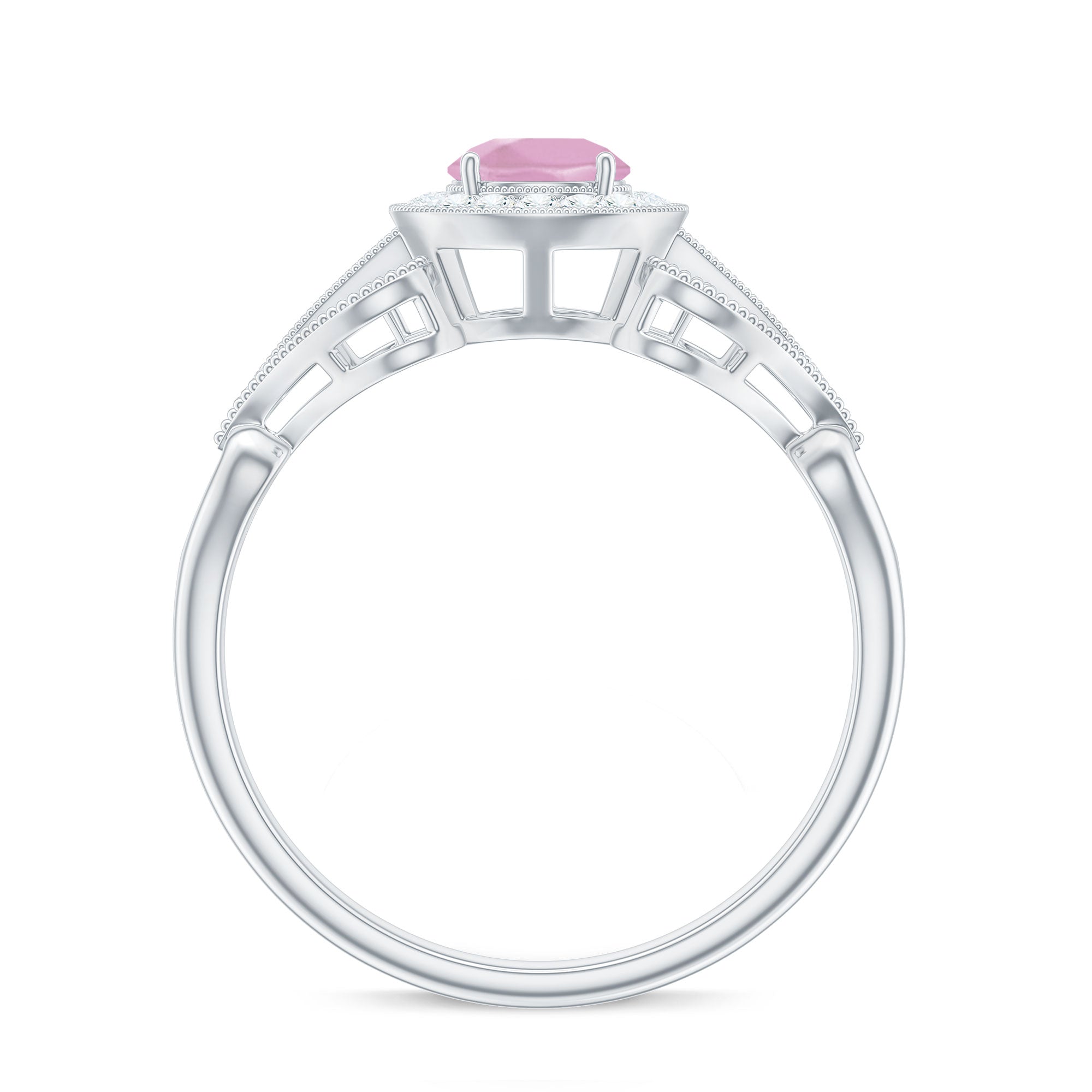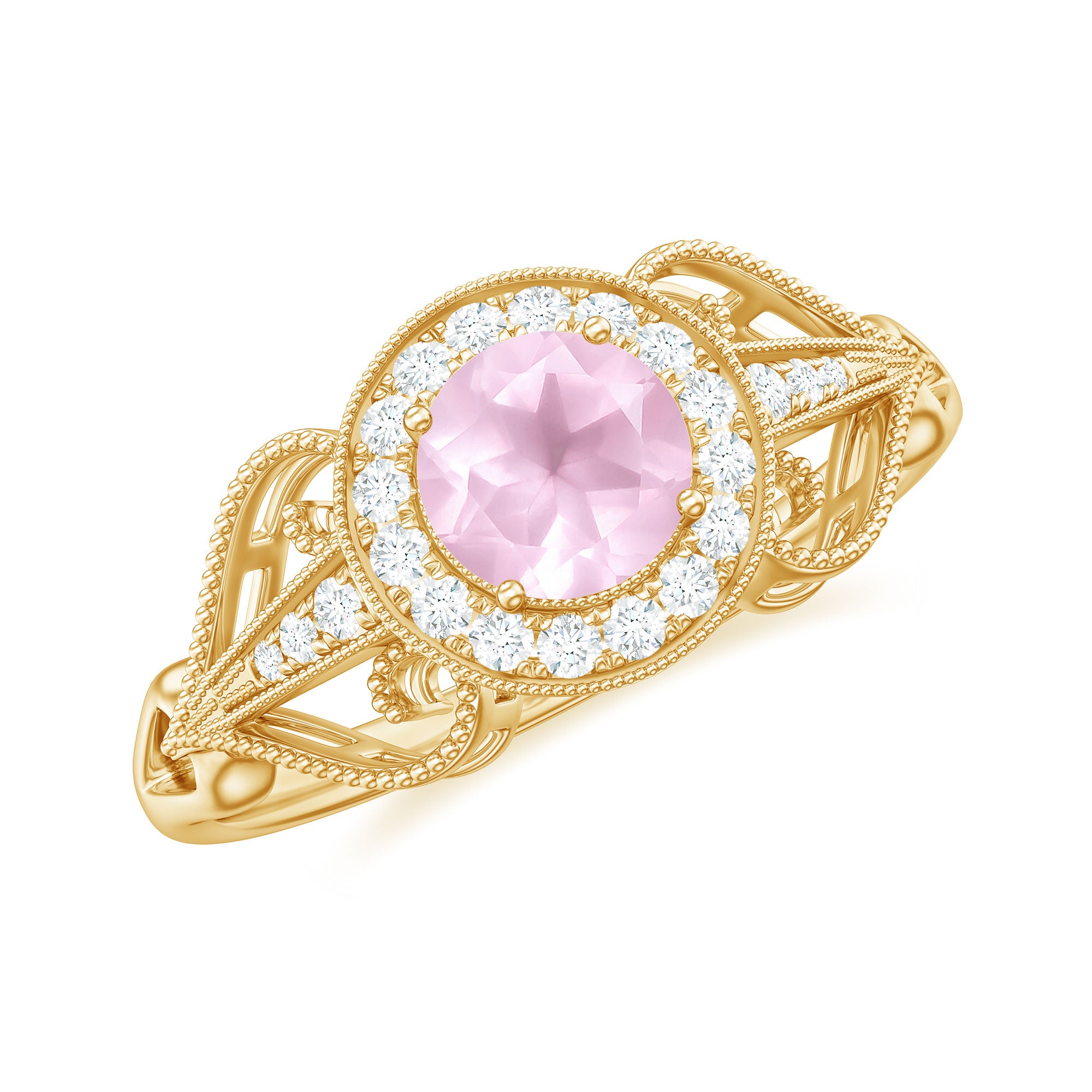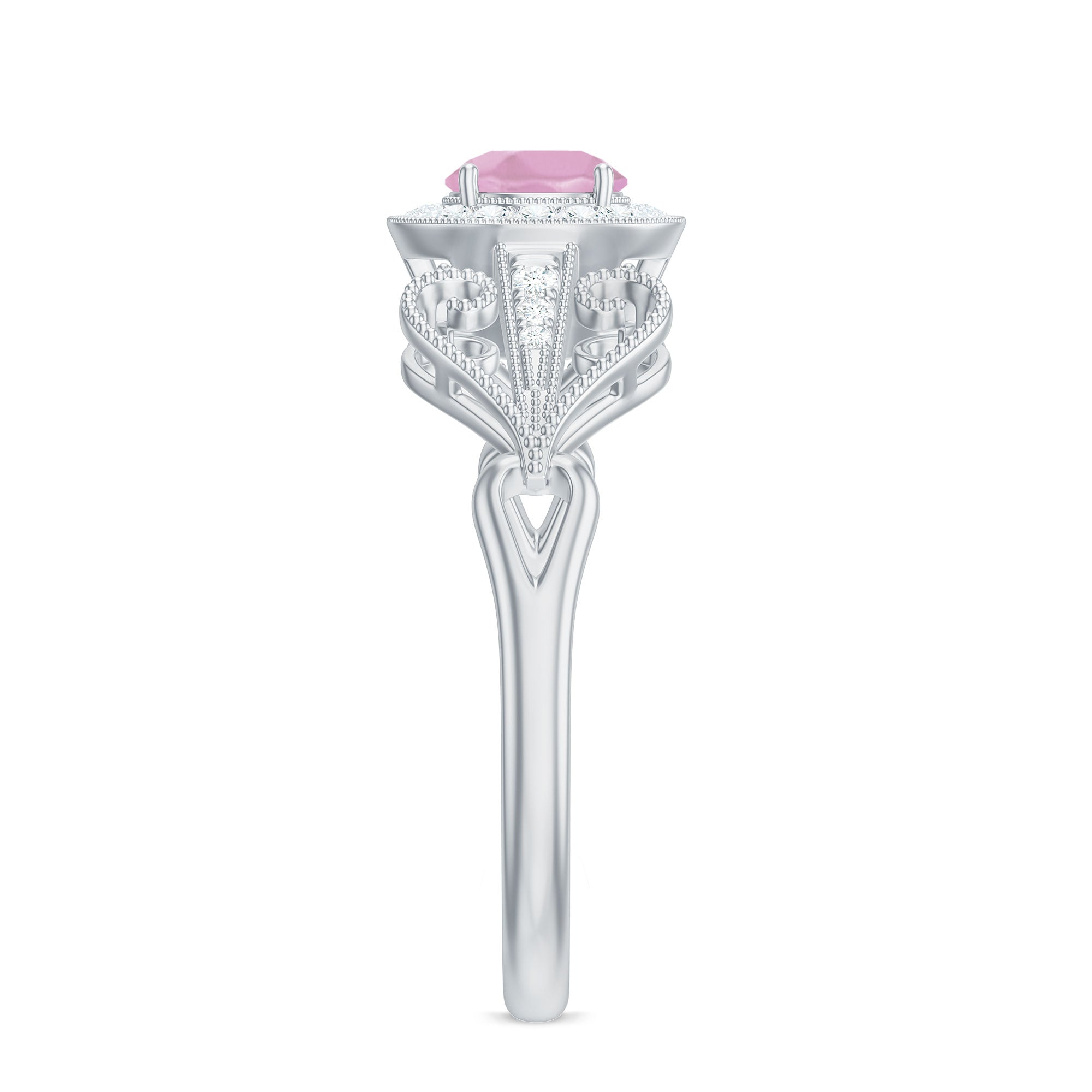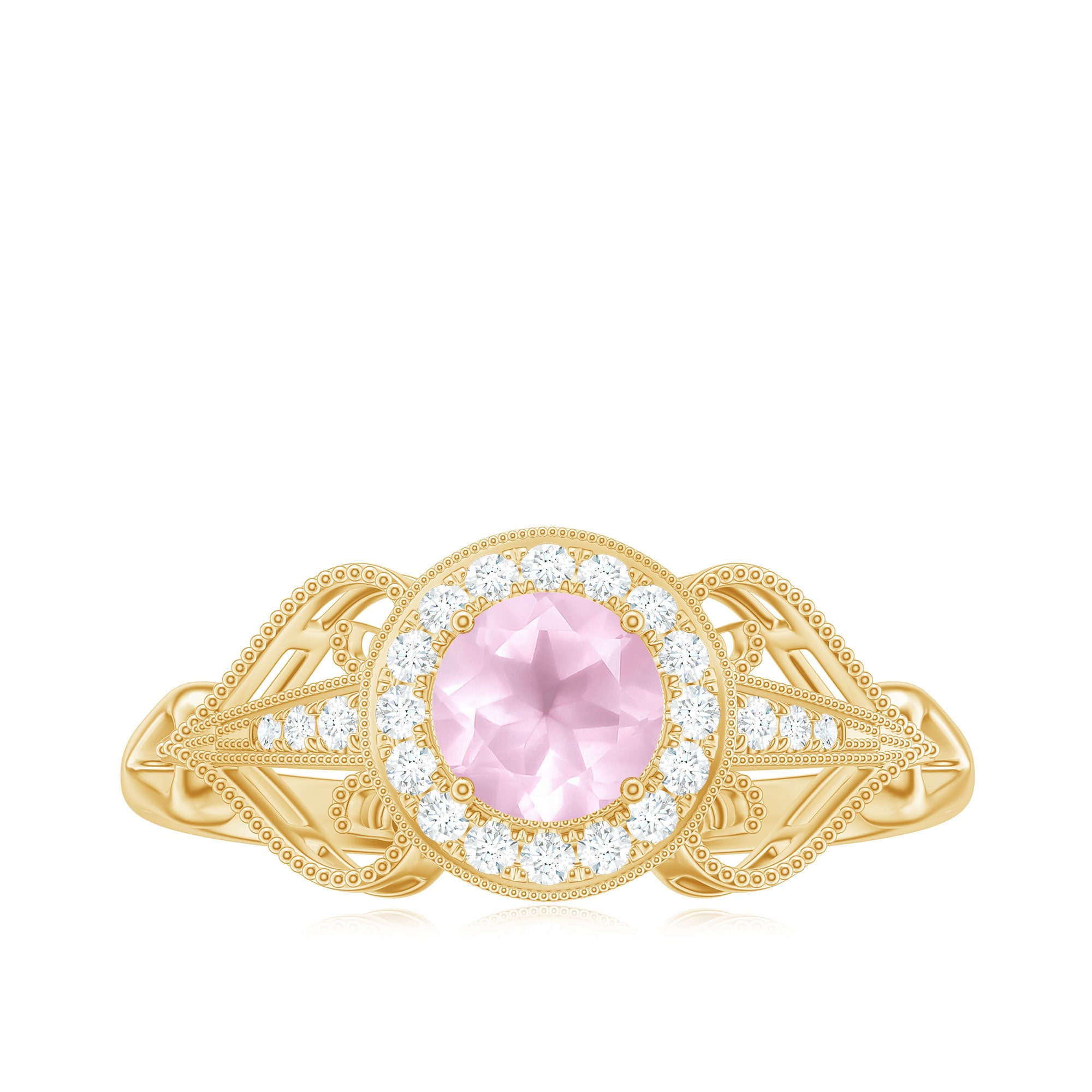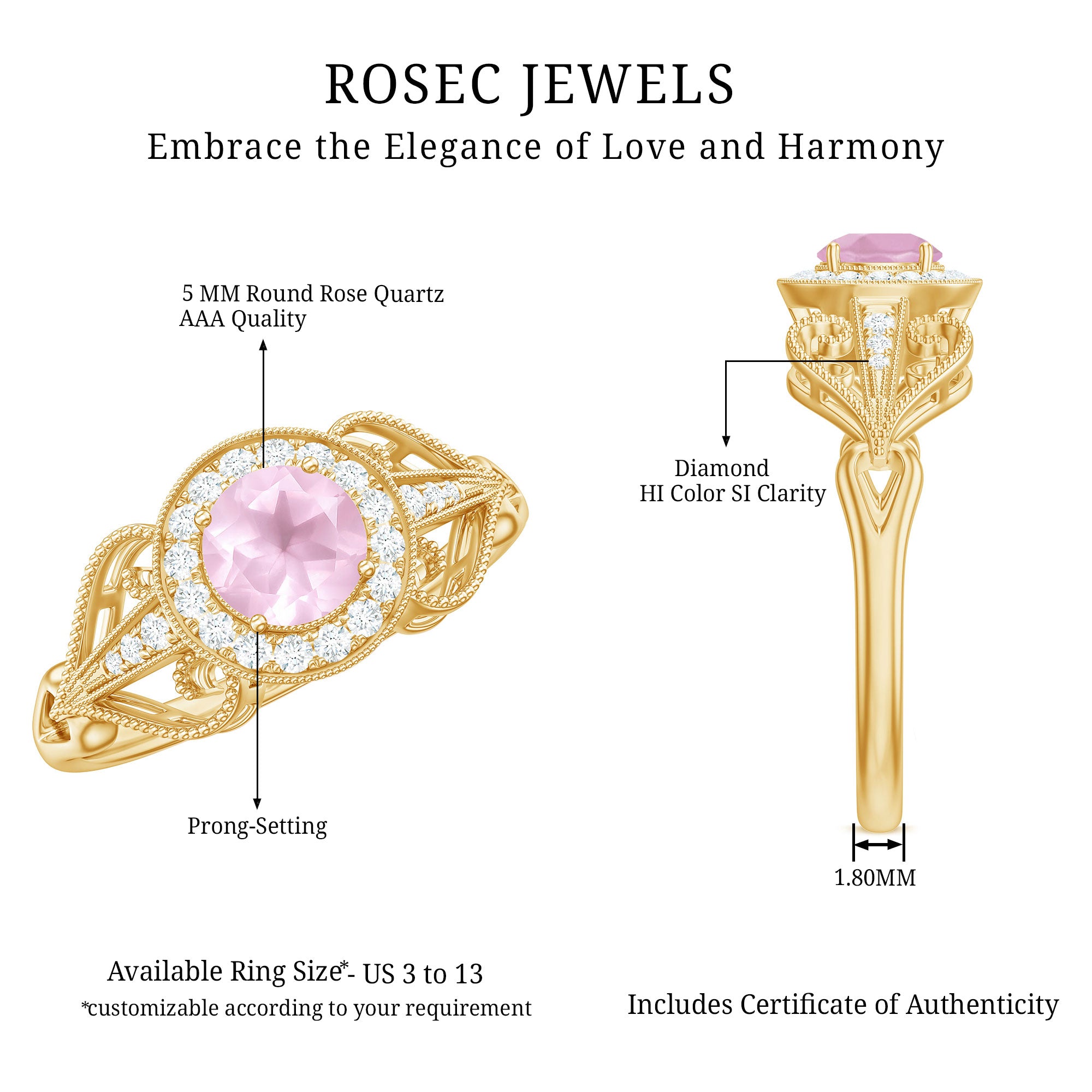 Vintage Rose Quartz Diamond Engagement Ring with Beaded Detail