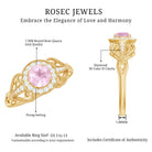 The brightness of Rose Quartz makes this vintage ring more appealing. The Rose Quartz Engagement Ring is embellished with Round Diamond Accent, glistening on the shank beautifully. The Rose Quartz Diamond Engagement Ring is accentuated with Beaded Gold, making your significant feel more precious with this Rose Quartz Gold Ring.