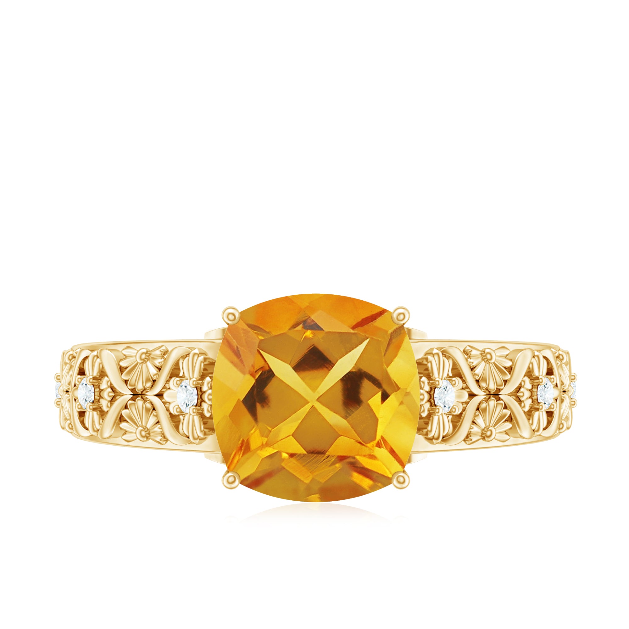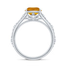Vintage Style 8mm Citrine Cushion Cut Engagement Ring with Diamond