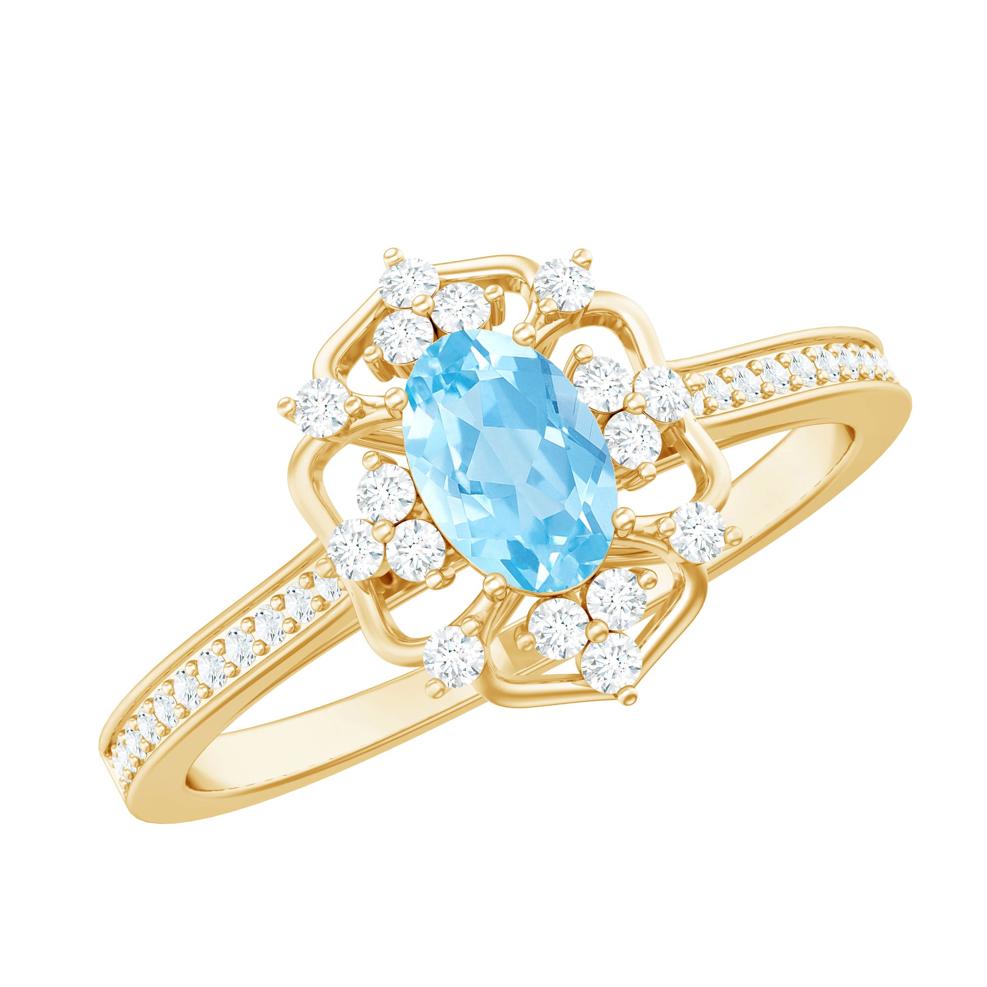 Vintage Style Aquamarine Flower Engagement Ring with Diamond