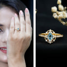 Step into a world of timeless charm with the Vintage Style Aquamarine Flower Engagement Ring with Diamond, an exquisite design that exudes elegance.