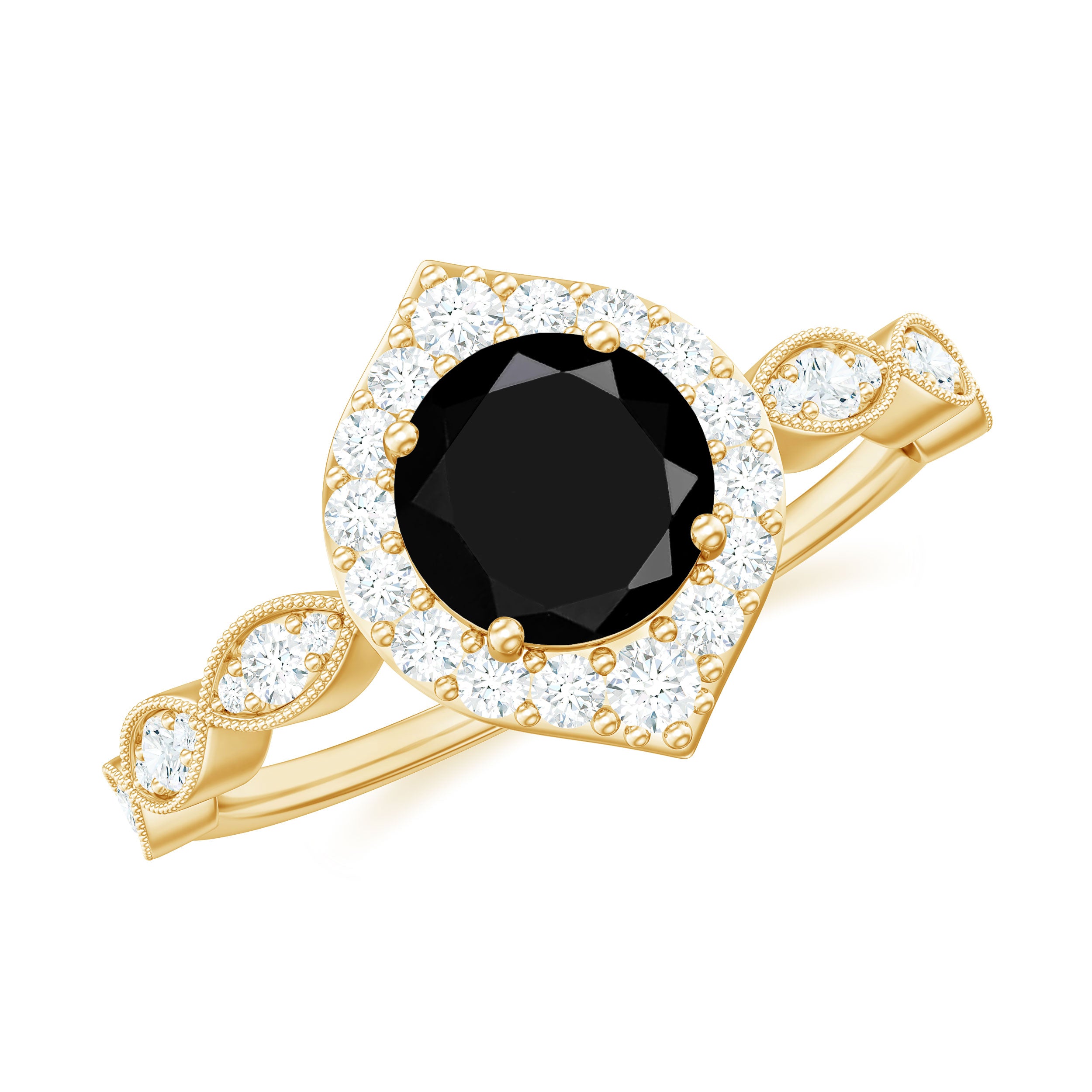 Vintage Style Black Diamond Engagement Ring with Moissanite