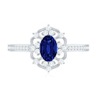 Surprise your beloved with this refined Vintage Inspired Floral Engagement Ring, a stunning piece that exudes elegance and charm. The centerpiece of this exquisite ring is an Oval Cut Created Blue Sapphire, beautifully showcased in a Prong Setting and accented with sparkling Round Shape Diamond stones. The ring is crafted with Solid Gold, adding to its timeless appeal. Give your special someone a gift that she will cherish forever, and symbolize your love with this magnificent Floral Engagement Ring.
