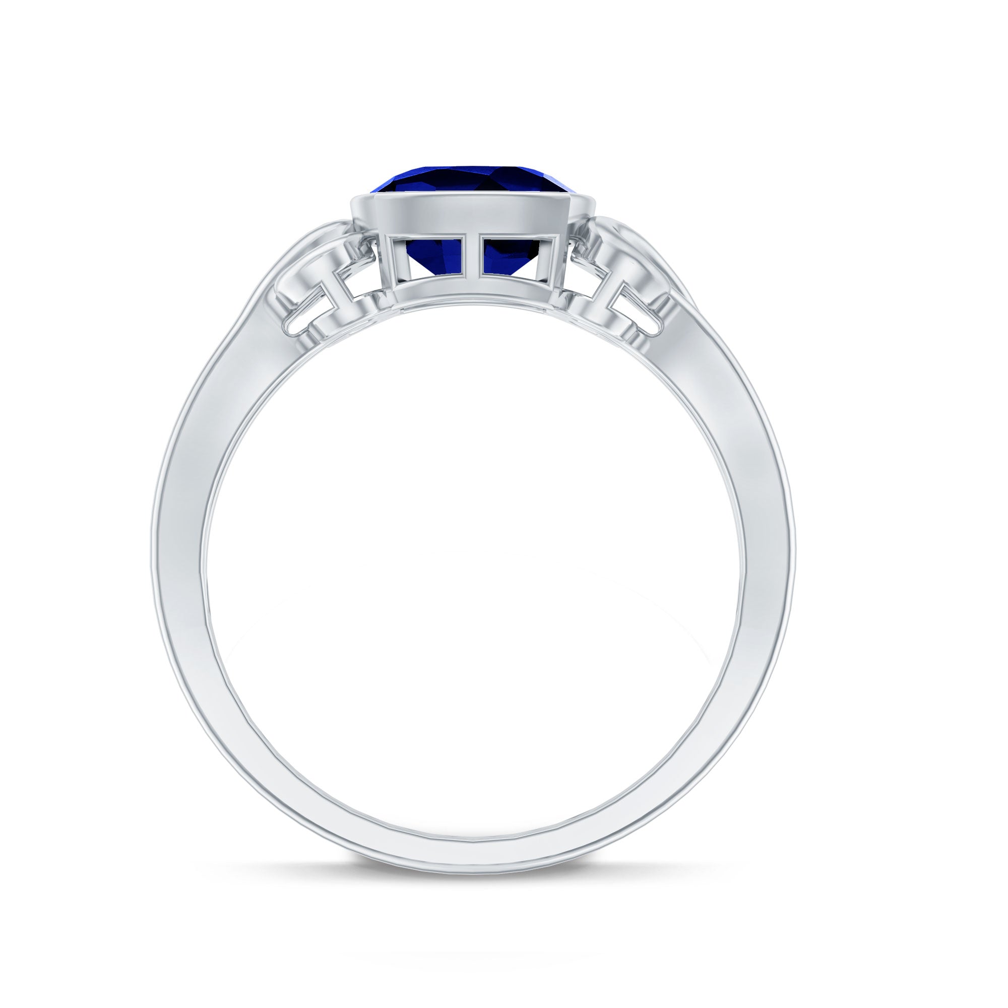 Vintage Style Created Blue Sapphire Solitaire Engagement Ring in Bezel Setting