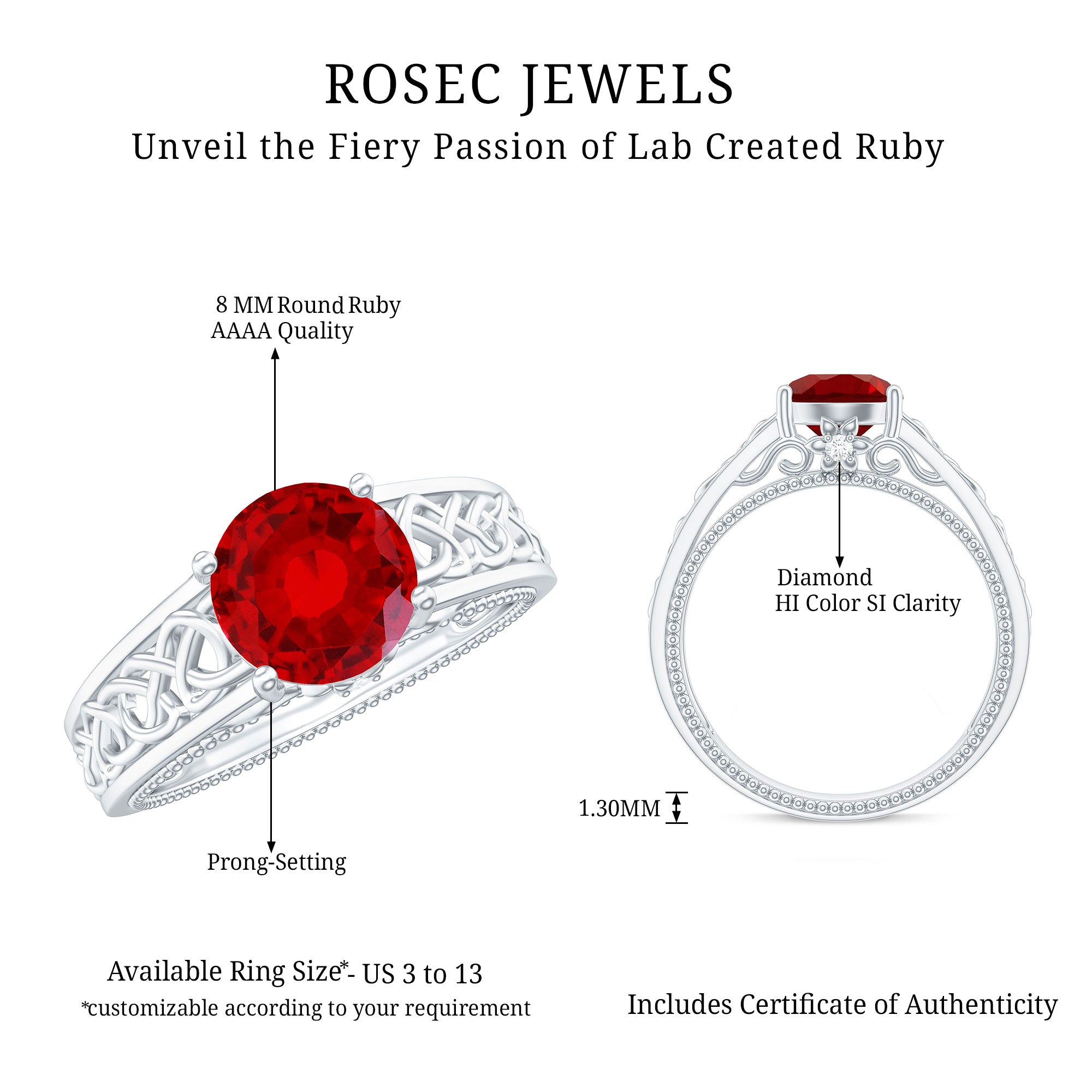Vintage Style Created Ruby Celtic Knot Band Ring with Surprise Diamond